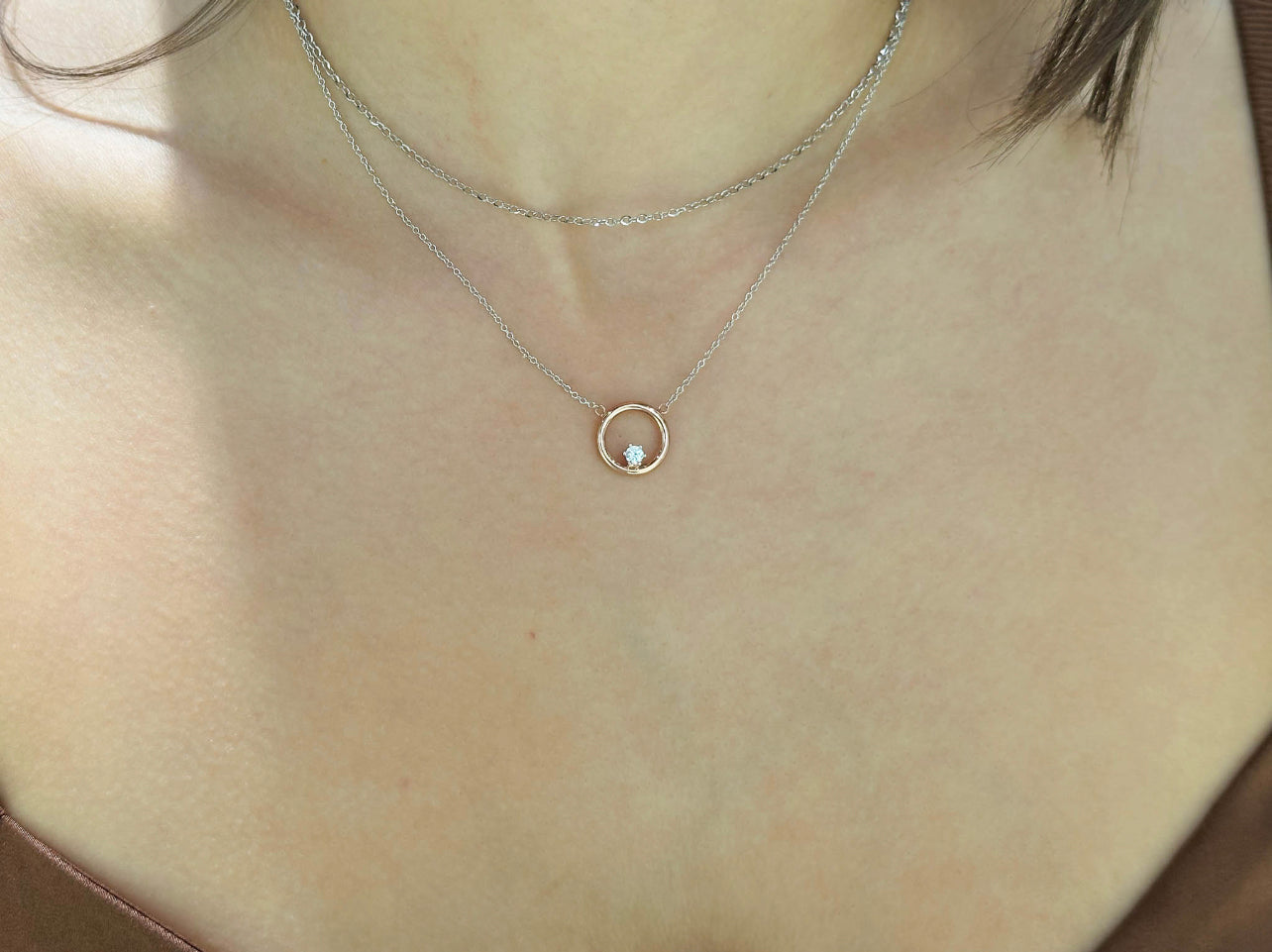 10K Gold Circle Necklace with CZ