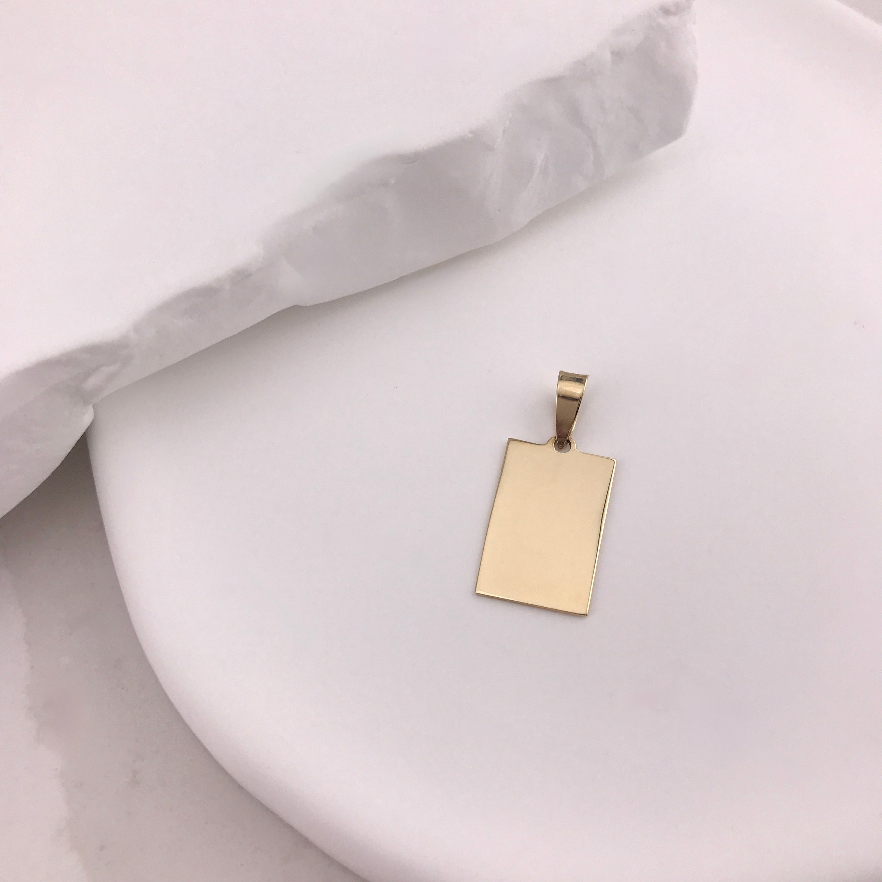 10k Yellow Gold Dog Tag with Heart-Cut out and CZ Necklace