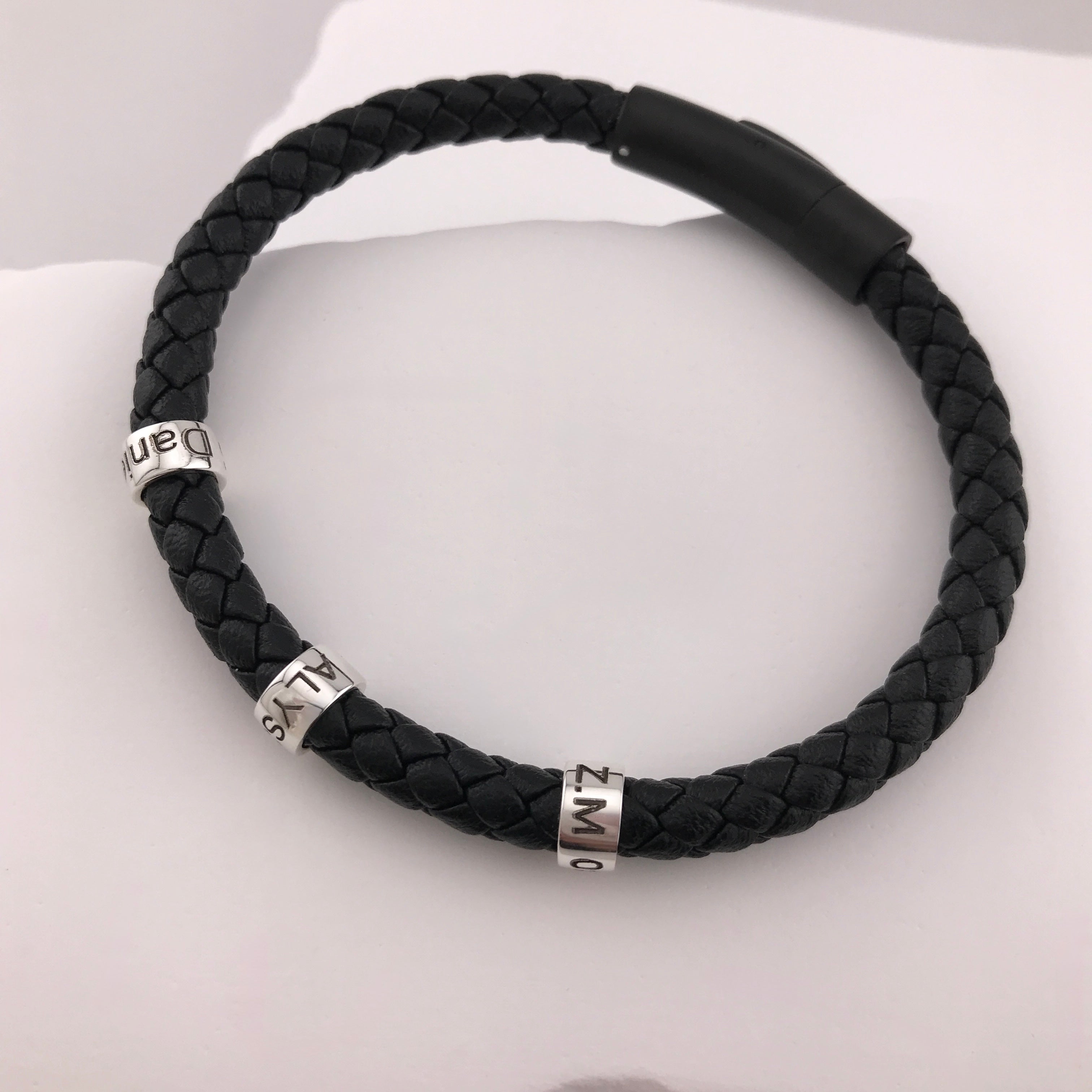 Stainless Steel Black Braided Leather with Matte Black Clasp Bracelet