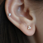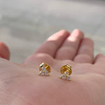 Right on trend with our 3 stone layering earring. These 18k Gold Vermeil over 925 Sterling Silver Cubic Zirconia Lotus Stud Earrings are perfect on their own or great for multiple piercings.