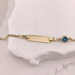Engravable- Children's 10k Yellow Gold Evil Eye ID Bracelet