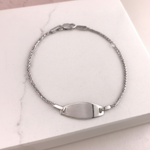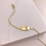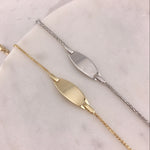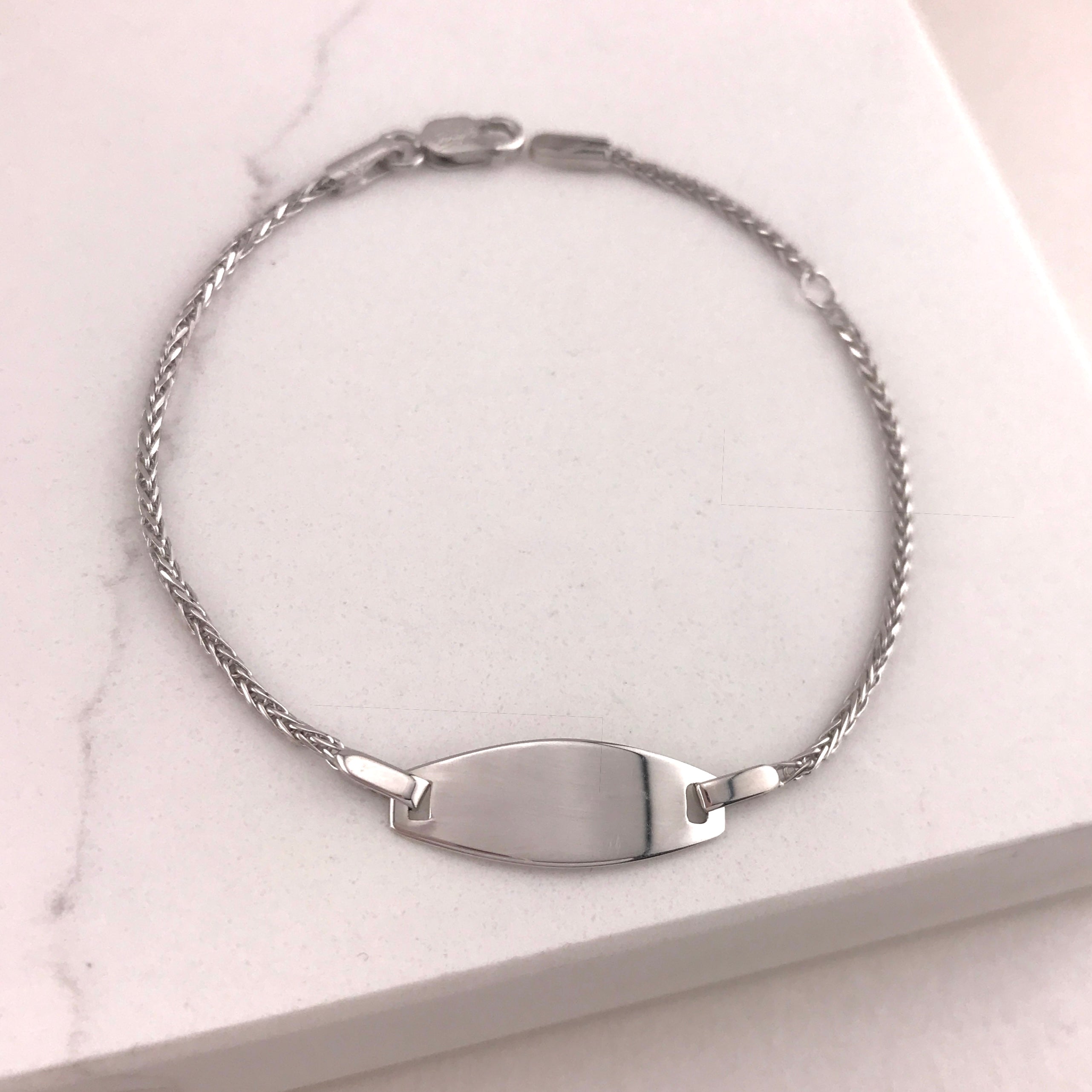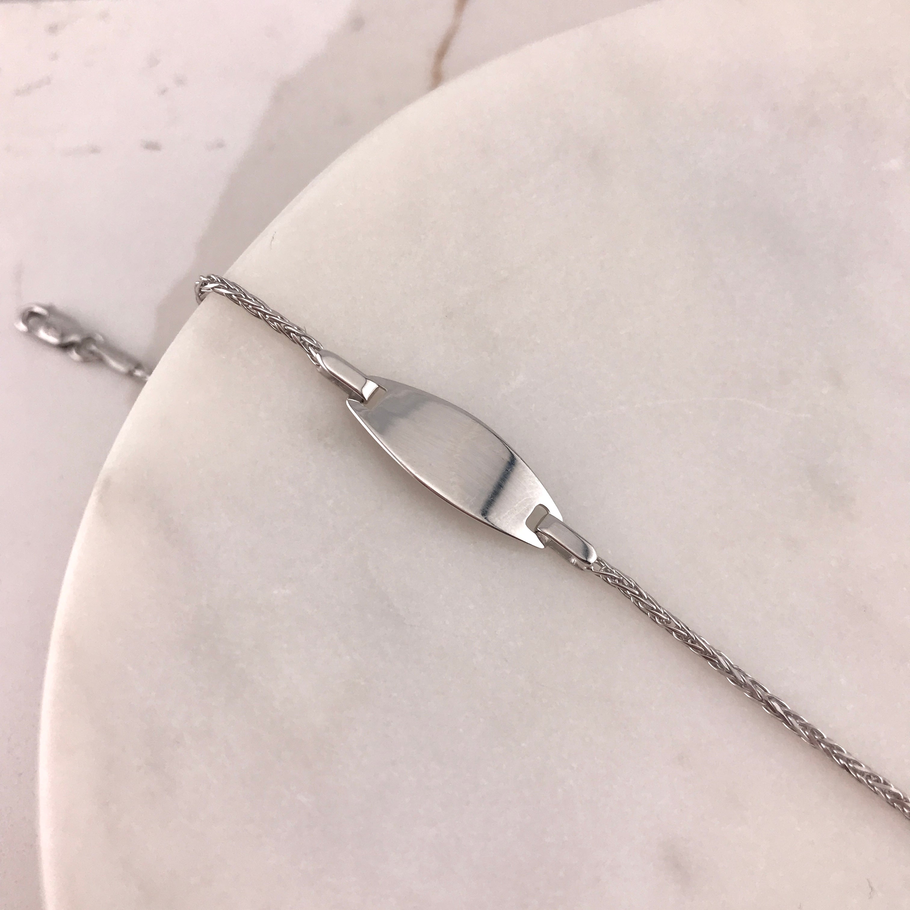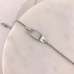 This adjustable 10k white gold bracelet is beautiful for your little one. Customize it with your child's name, or a special phrase on the gold ID plate. This bracelet is an essential accessory and will be a great start to your little darlings jewellery collection!