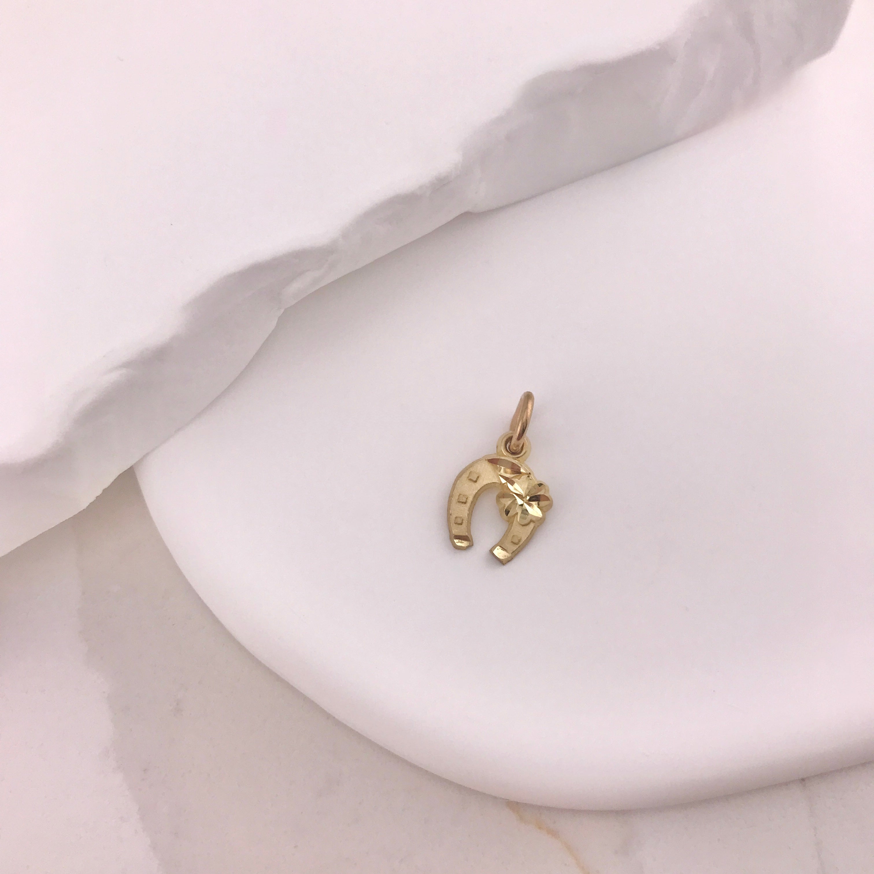10k Gold Horseshoe with Four Leaf Clover Pendant