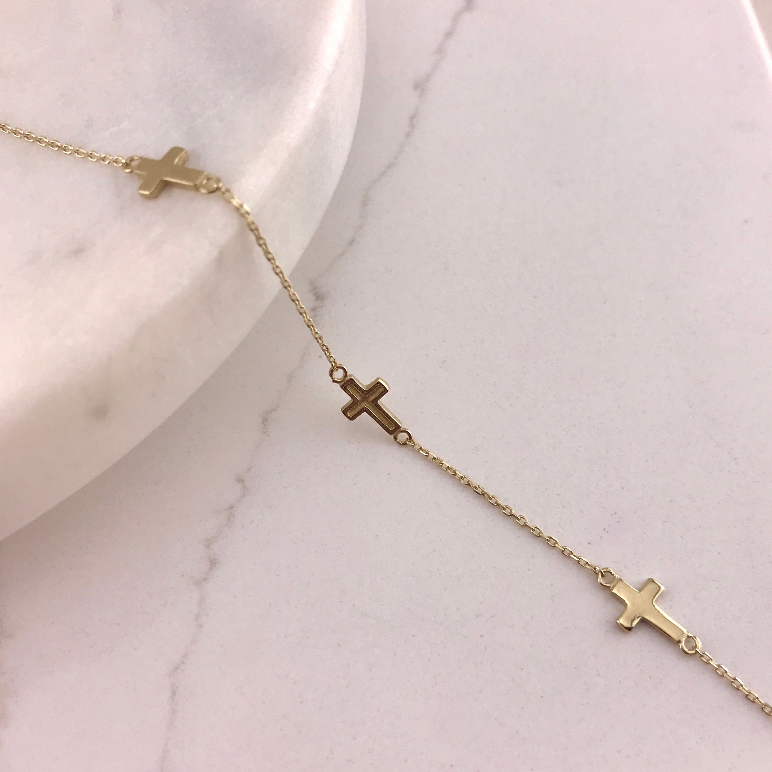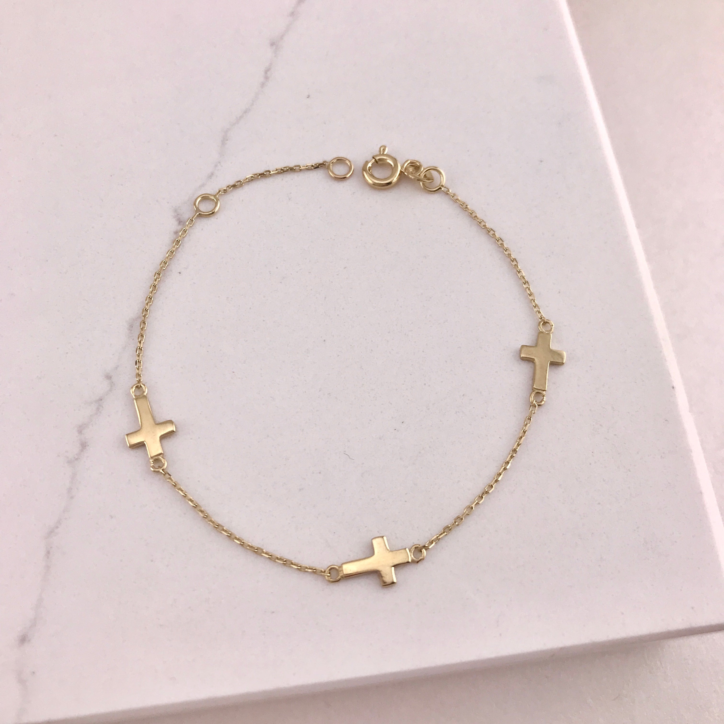 This charming children’s bracelet showcases petite cross charms in 10k yellow or white gold, offering a timeless symbol of faith in a sweet, delicate design. A beautiful keepsake for special moments and meaningful gifts.