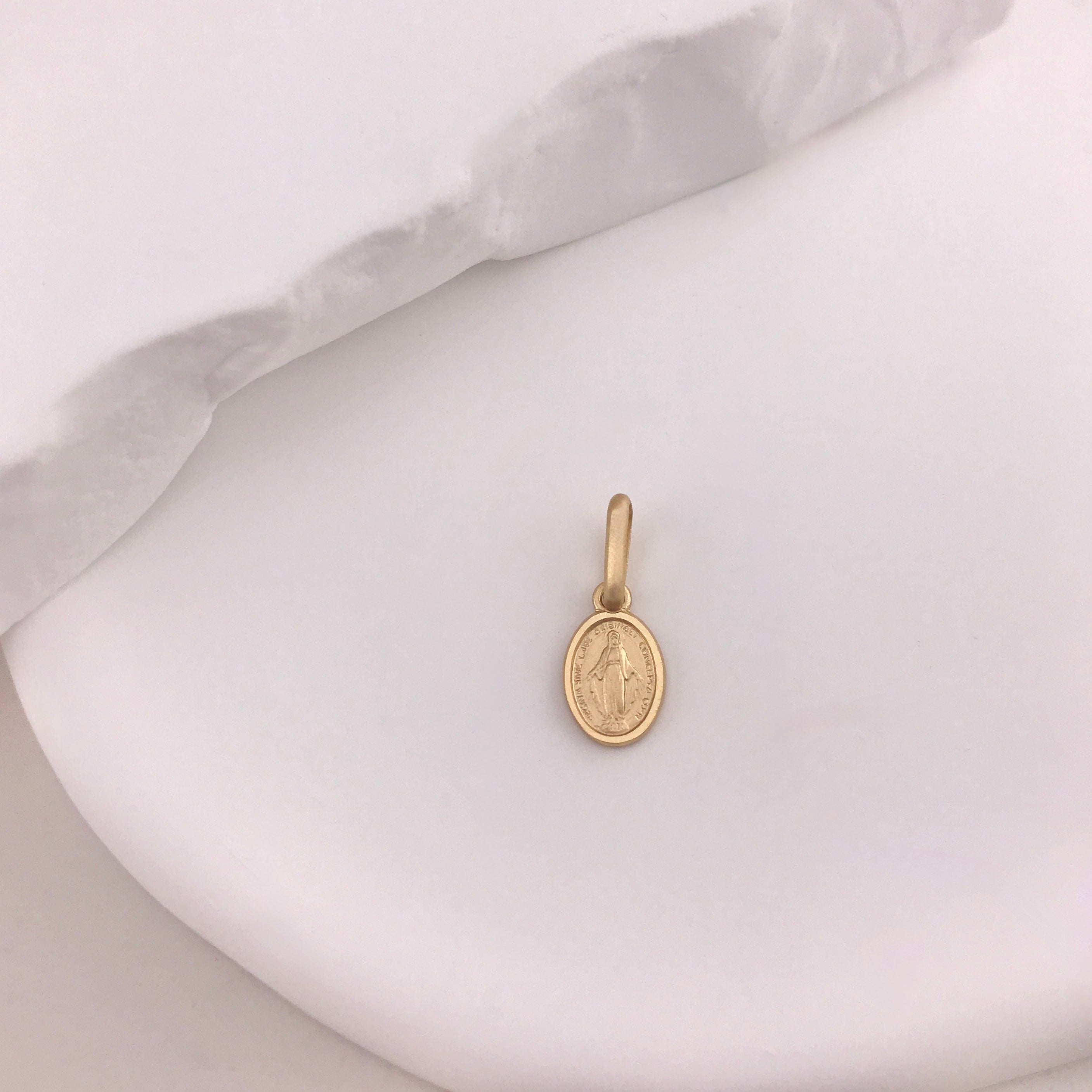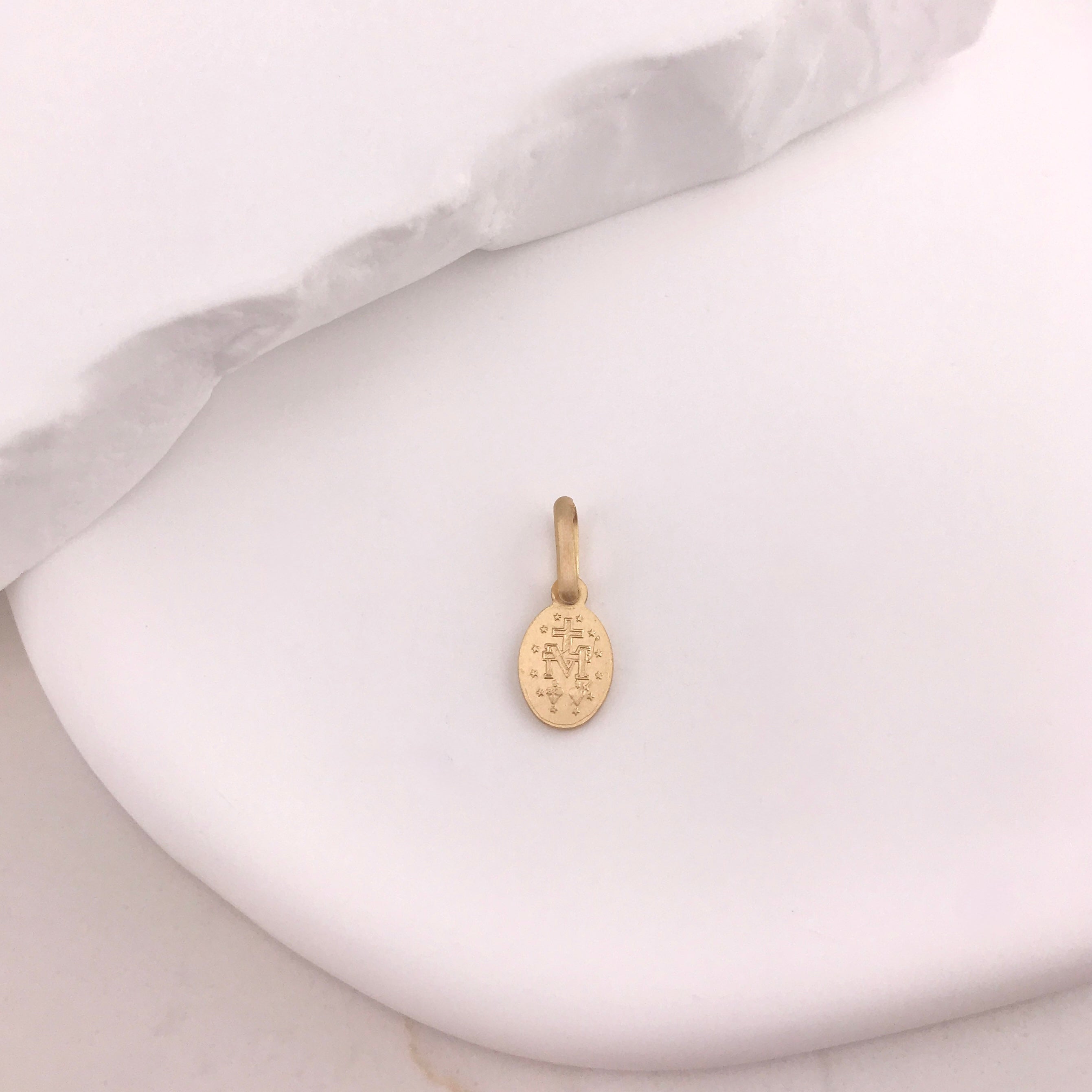 Keep Mother Mary near with this 10k Yellow Gold Mother Mary charm. A special gift for anyone receiving a sacrament. Add to a necklace, bracelet or pin and perfect for layering.