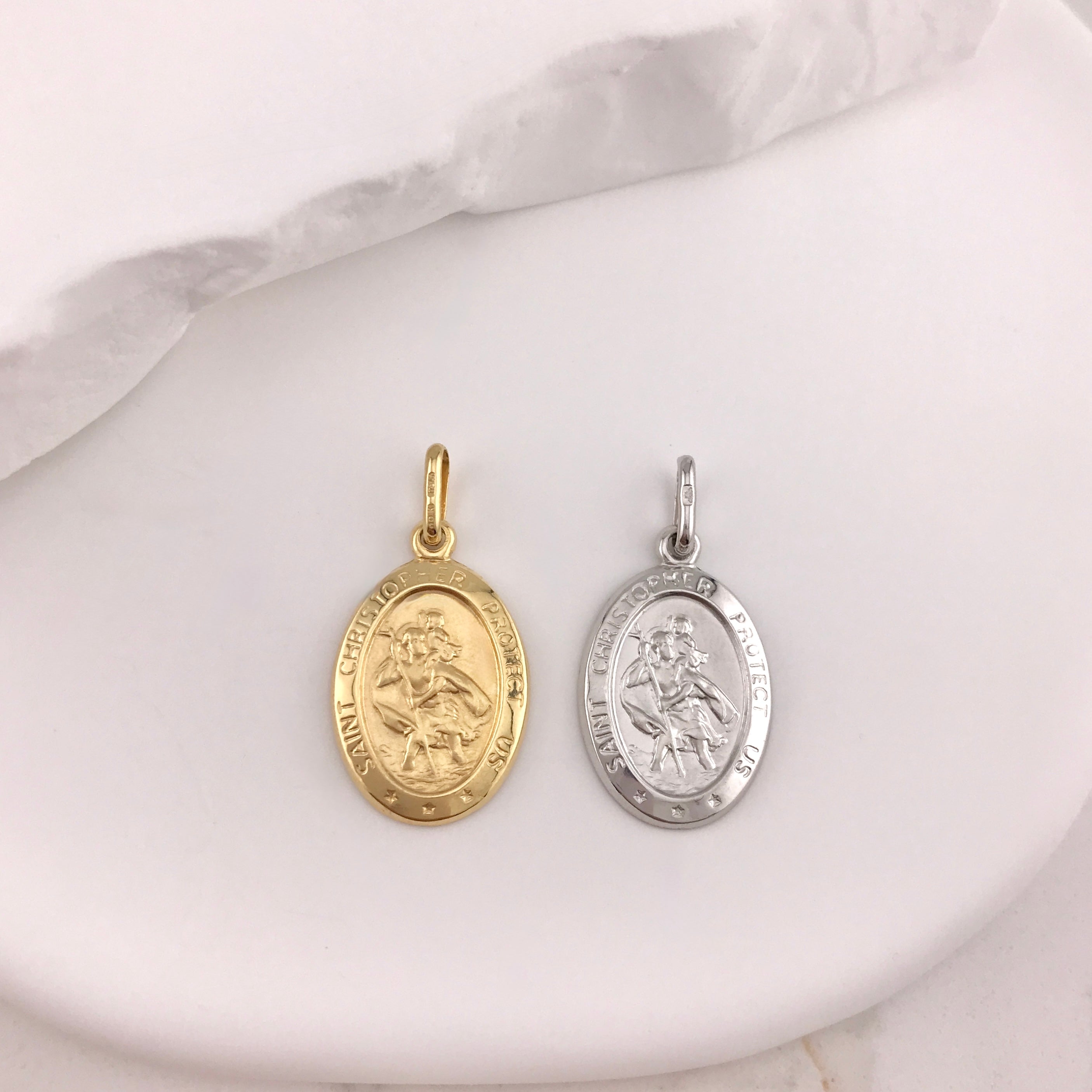 A symbol of protection while travelling, this beautiful 10k Gold Oval St Christopher pendant makes a great addition to any necklace.