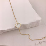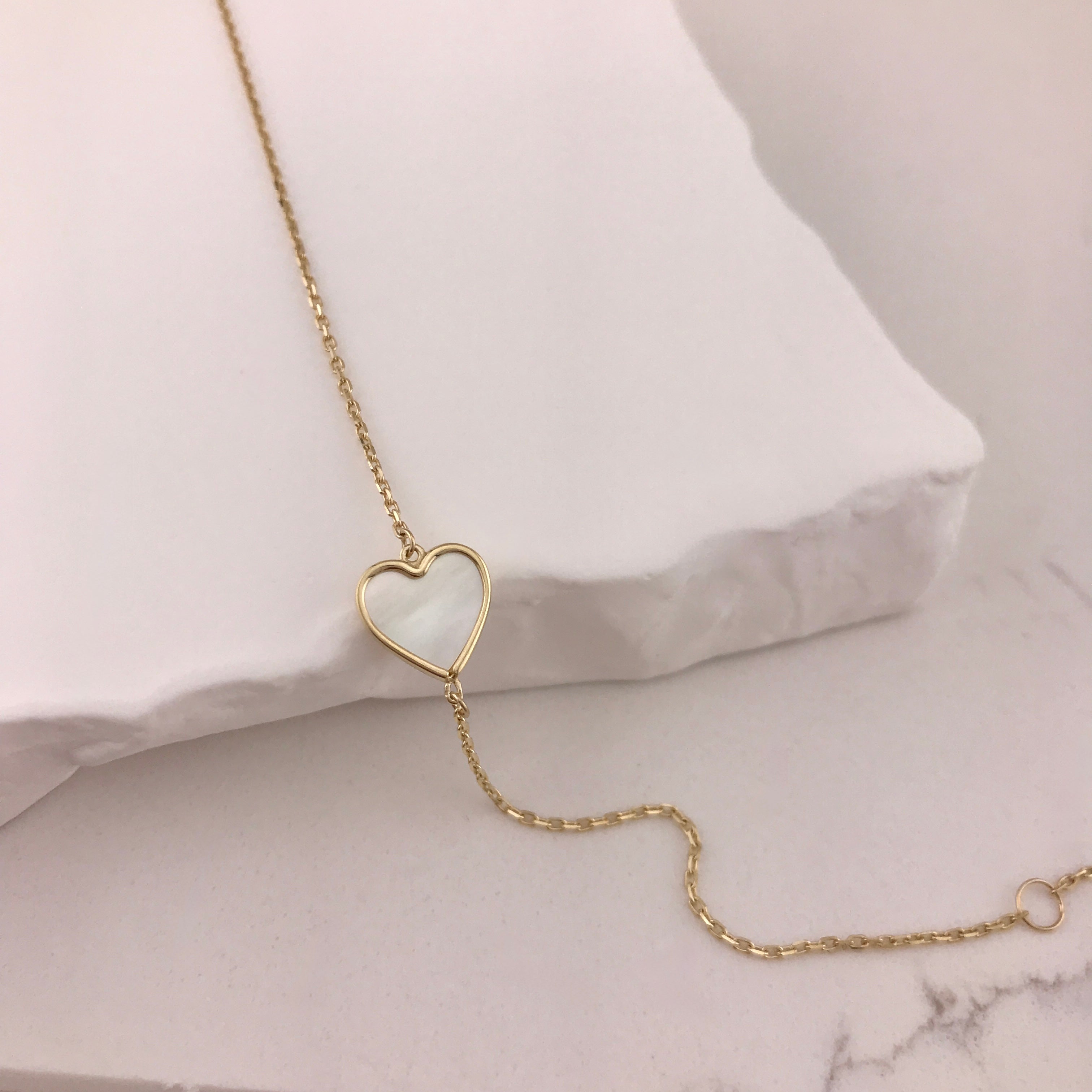 Radiate warmth with this luminous mother of pearl heart bracelet, set in 10k yellow gold. The iridescent shell catches light beautifully, creating an enchanting glow against the rich gold. Playful yet elegant, this bracelet celebrates love and connection with natural beauty—perfect for everyday wear or gifting to someone special.