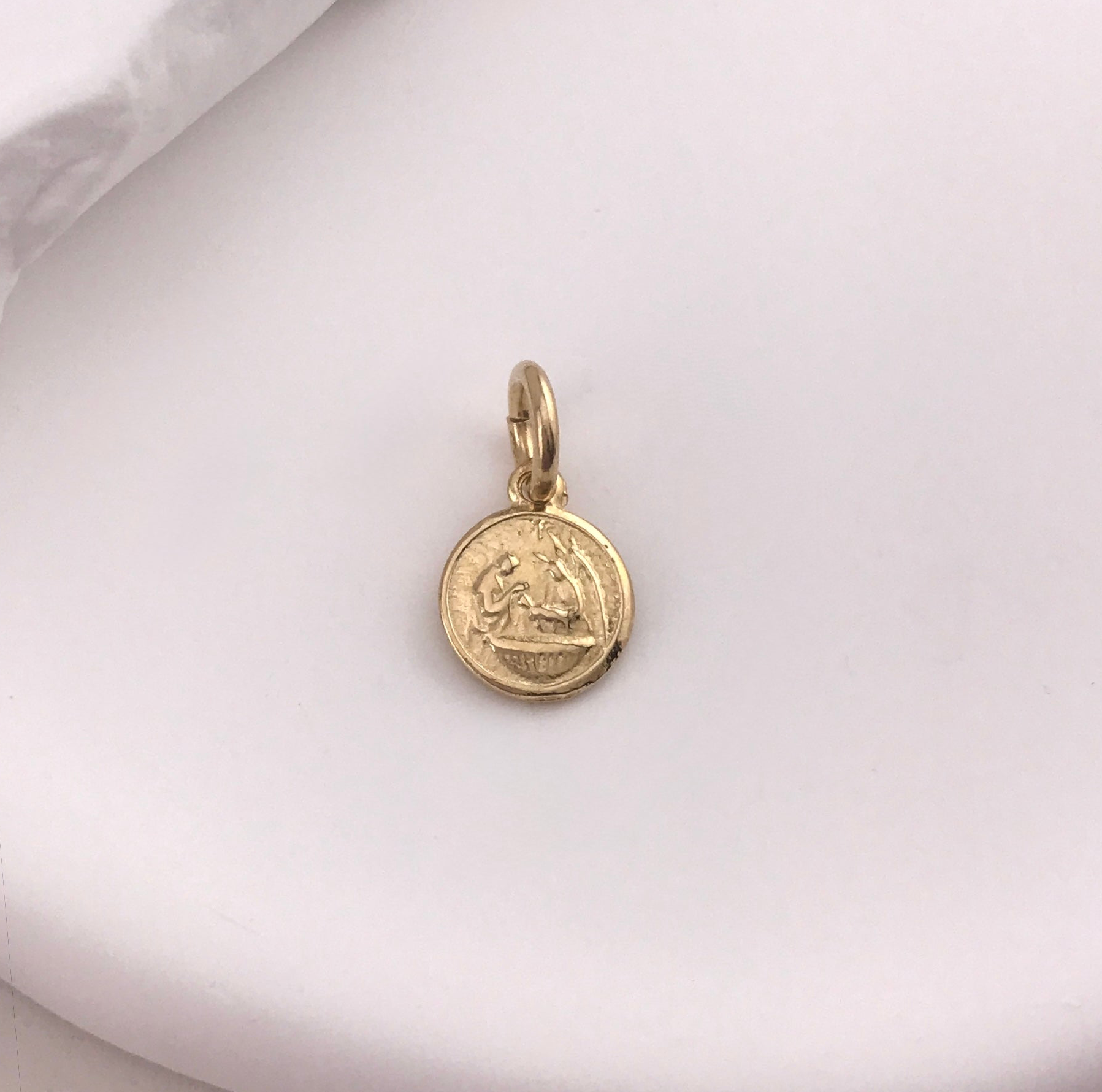 This baptism charm is crafted in solid 10k yellow gold and designed with a classic, timeless look. Perfect for attaching to baptism pins, bracelets, or necklaces. It’s made to be cherished as a symbol of faith, blessing, and new beginnings.