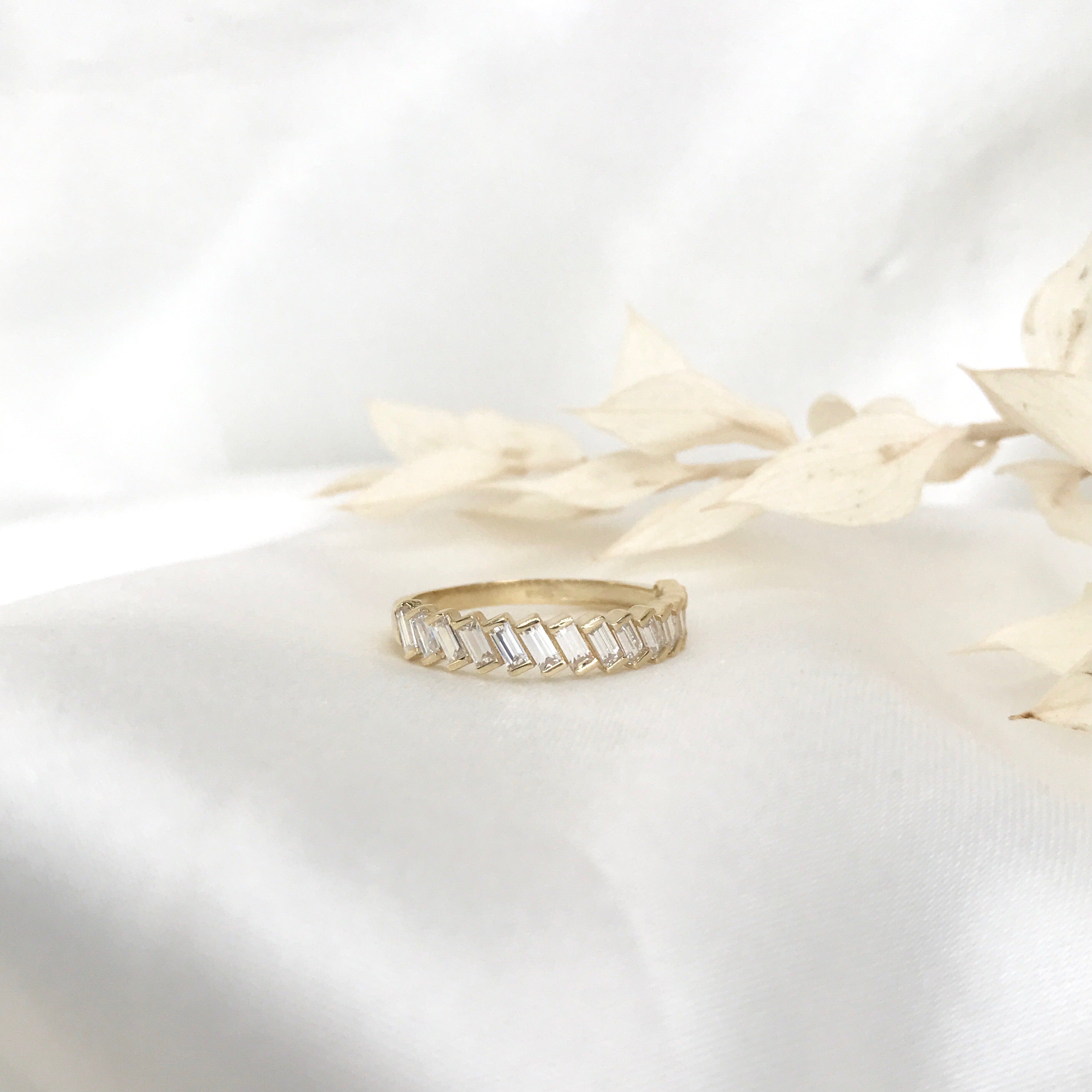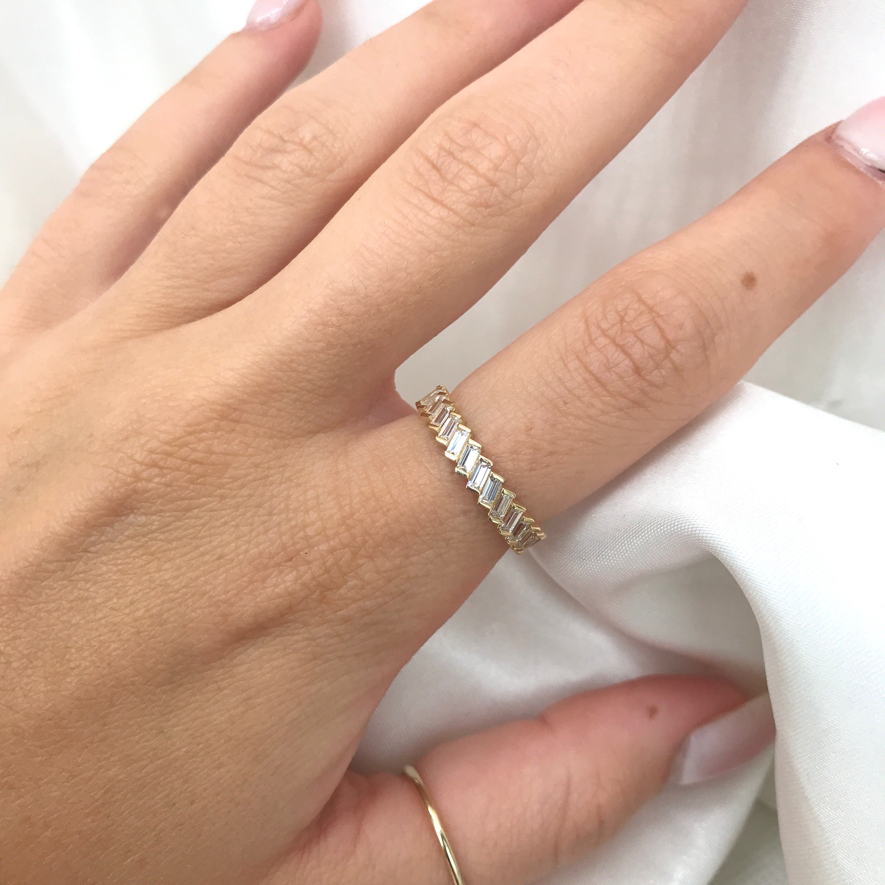 10k Yellow Gold Diagonal Baguette CZ Ring