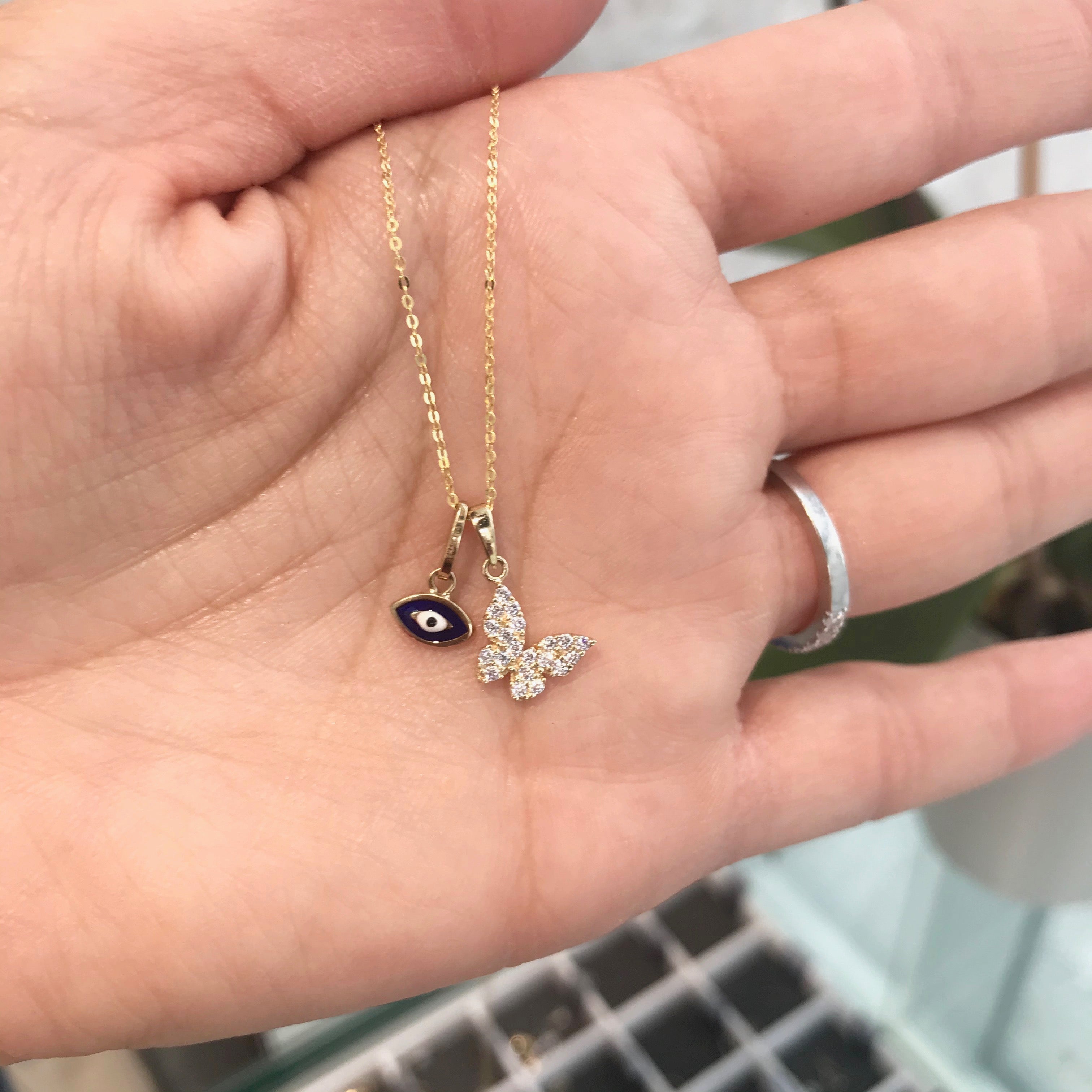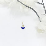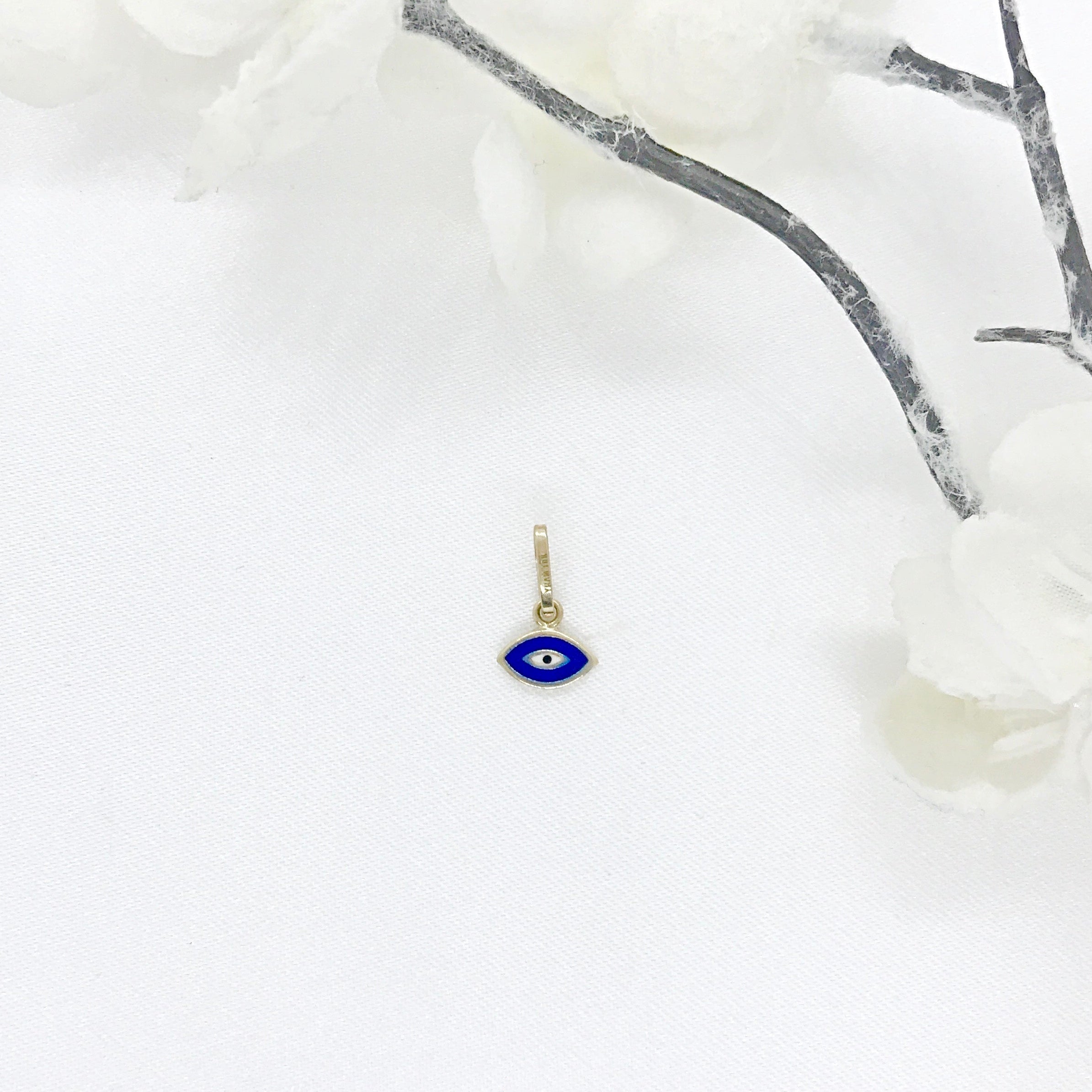 The evil eye is given for good karma, positive energies, and protection against unwanted evil. This beautiful 10k Yellow Gold charm is perfect to add on to a necklace, bracelet or pin.