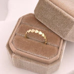 This 10k gold heart ring is a delicate and timeless piece of jewelry. This ring features beautifully shaped hearts going half way around the ring symbolizing love and affection. Its minimalist design makes it perfect for everyday wear or as a meaningful gift for someone special. The polished finish adds an elegant touch, making this ring both charming and versatile.