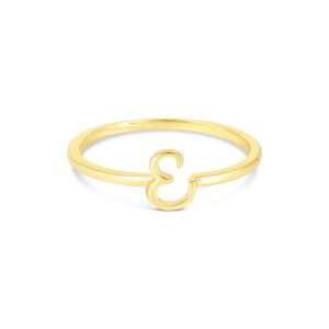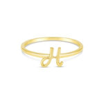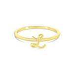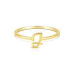 Delicate and personal, this thin 10k yellow gold script initial ring adds a touch of effortless elegance to your everyday style. Whether worn alone as a subtle statement or used to create a stack, it’s a piece that is stylish, subtle, and uniquely yours.