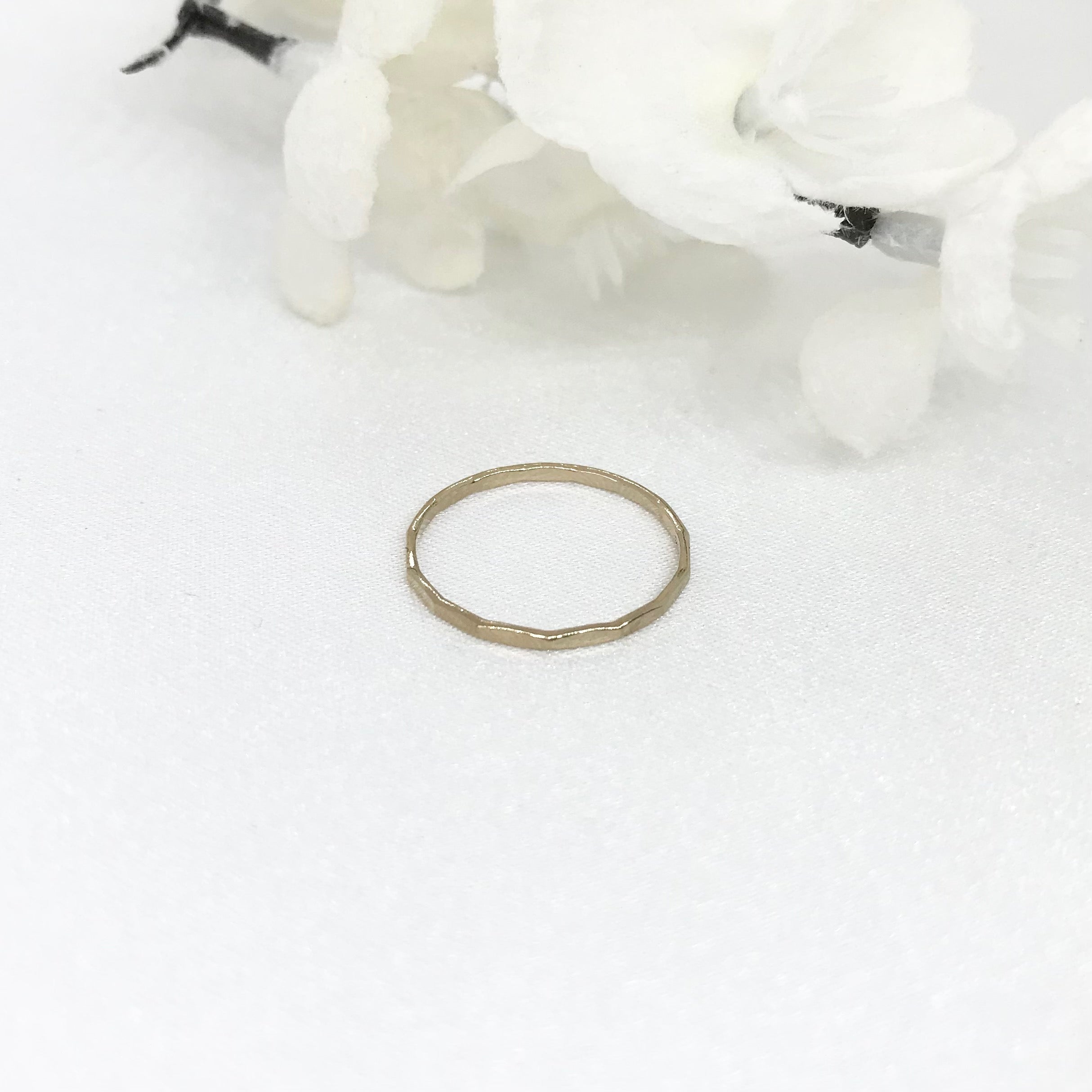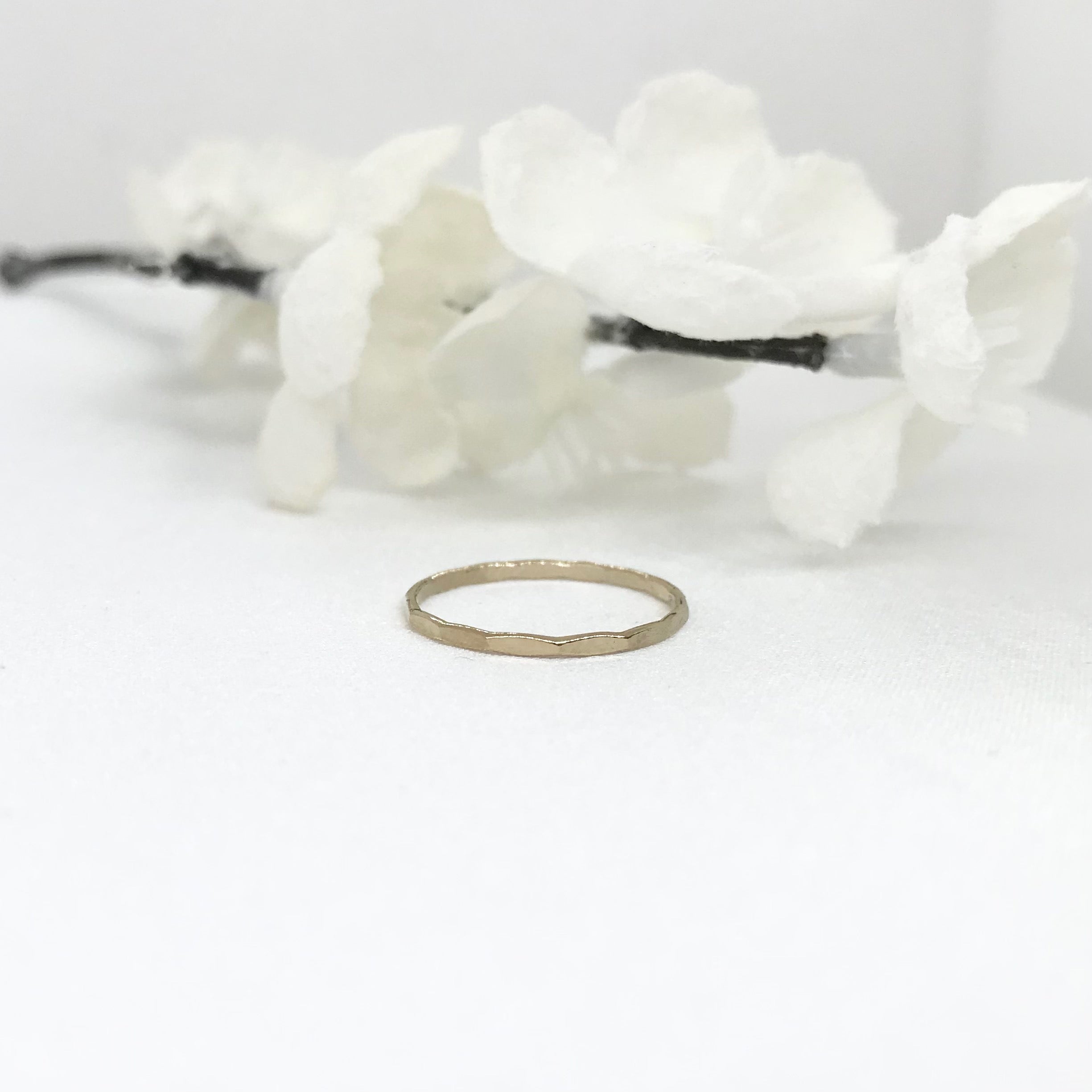 This dainty 14k gold filled hammered ring is great for a perfect stack or stands out on its own as well. Available in different sizes. Cute and simple for an everyday look or for going out at night!