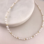 Pearls will always be a classic, but they are so hot right now! This dainty pearl necklace features freshwater pearls threaded along with 18k Gold Vermeil over 925 Sterling Silver beads. So pretty, trendy and elegant, it makes a great gift! Keep shopping for the matching bracelet and earrings!
