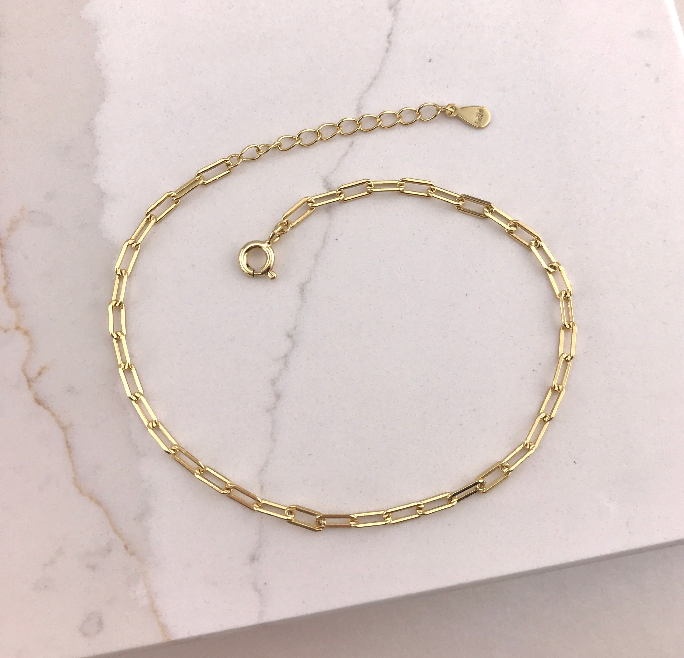 This 18k Gold Vermeil over 925 Sterling Silver Paper Clip Bracelet is the perfect piece for any layering. Stay on trend while staying on budget. Available in a matching necklace as well.