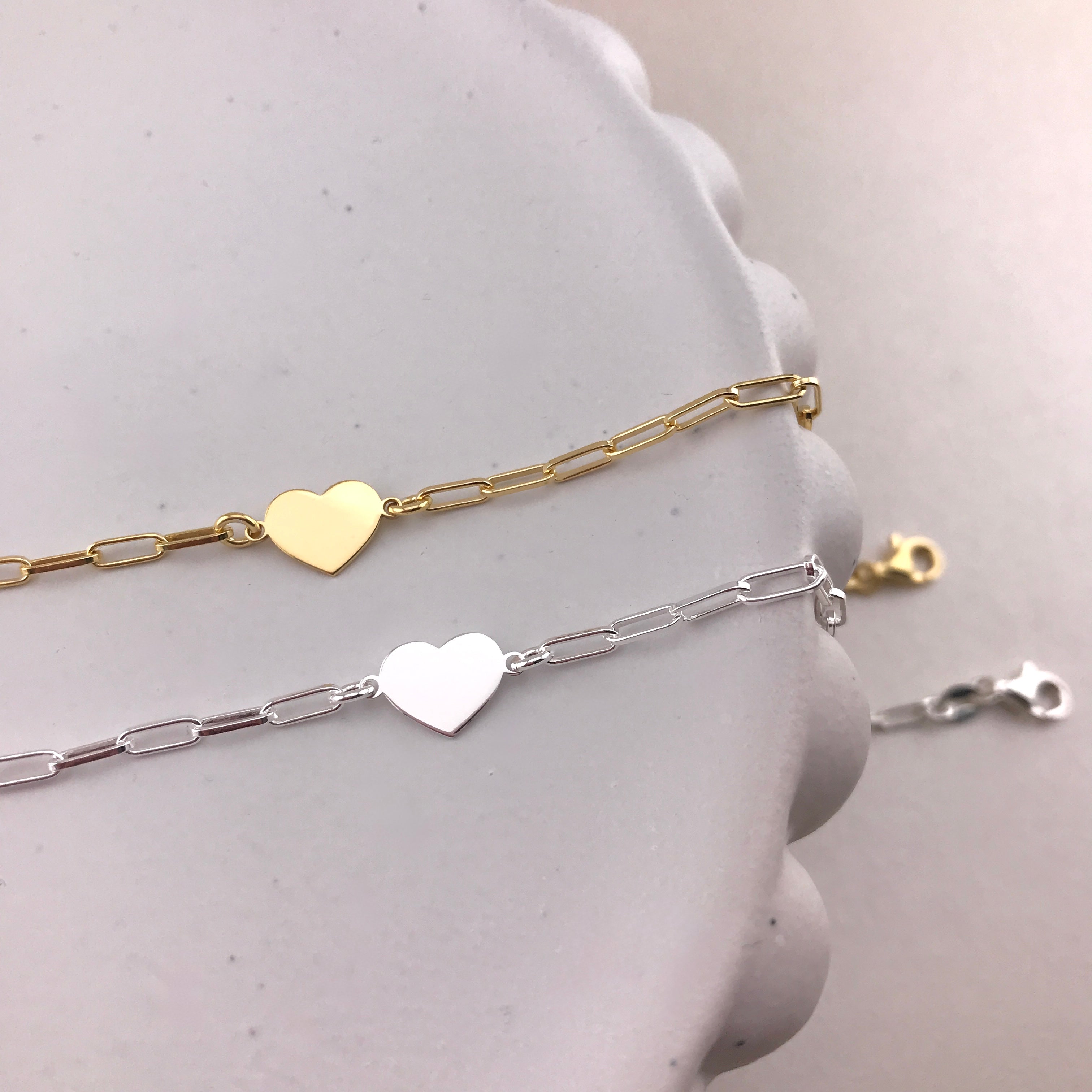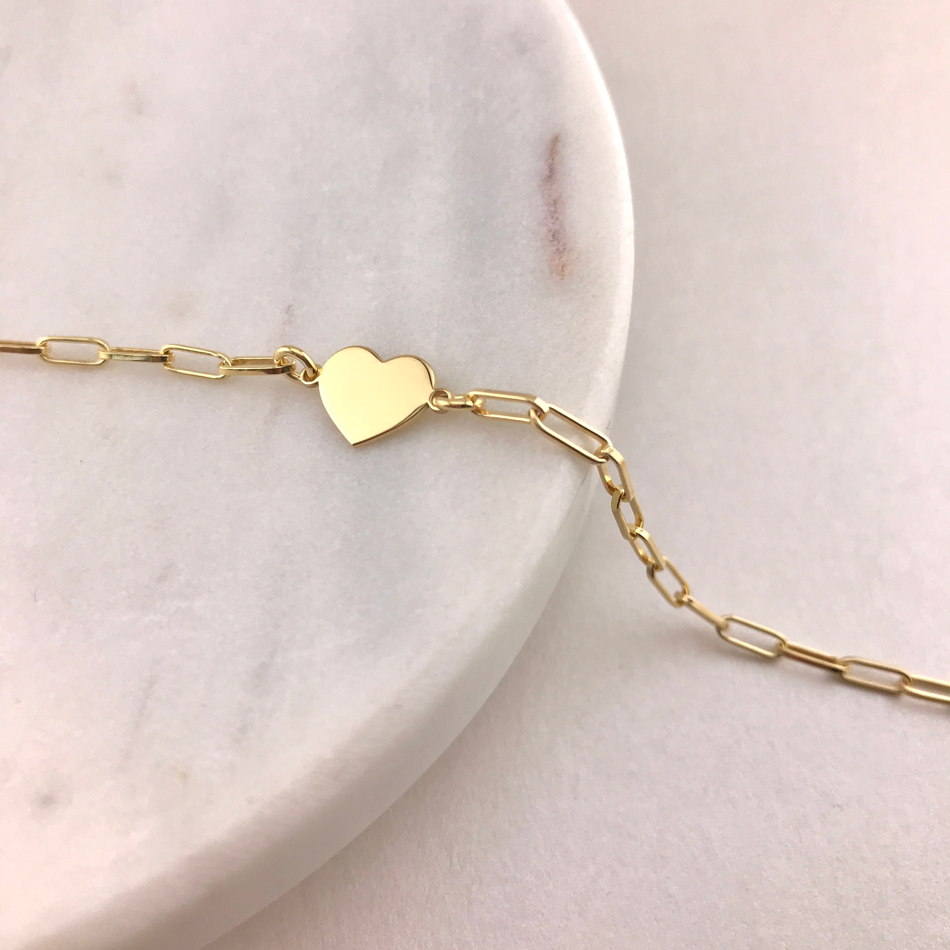 925/18k Vermeil Paperclip with Heart Bracelet