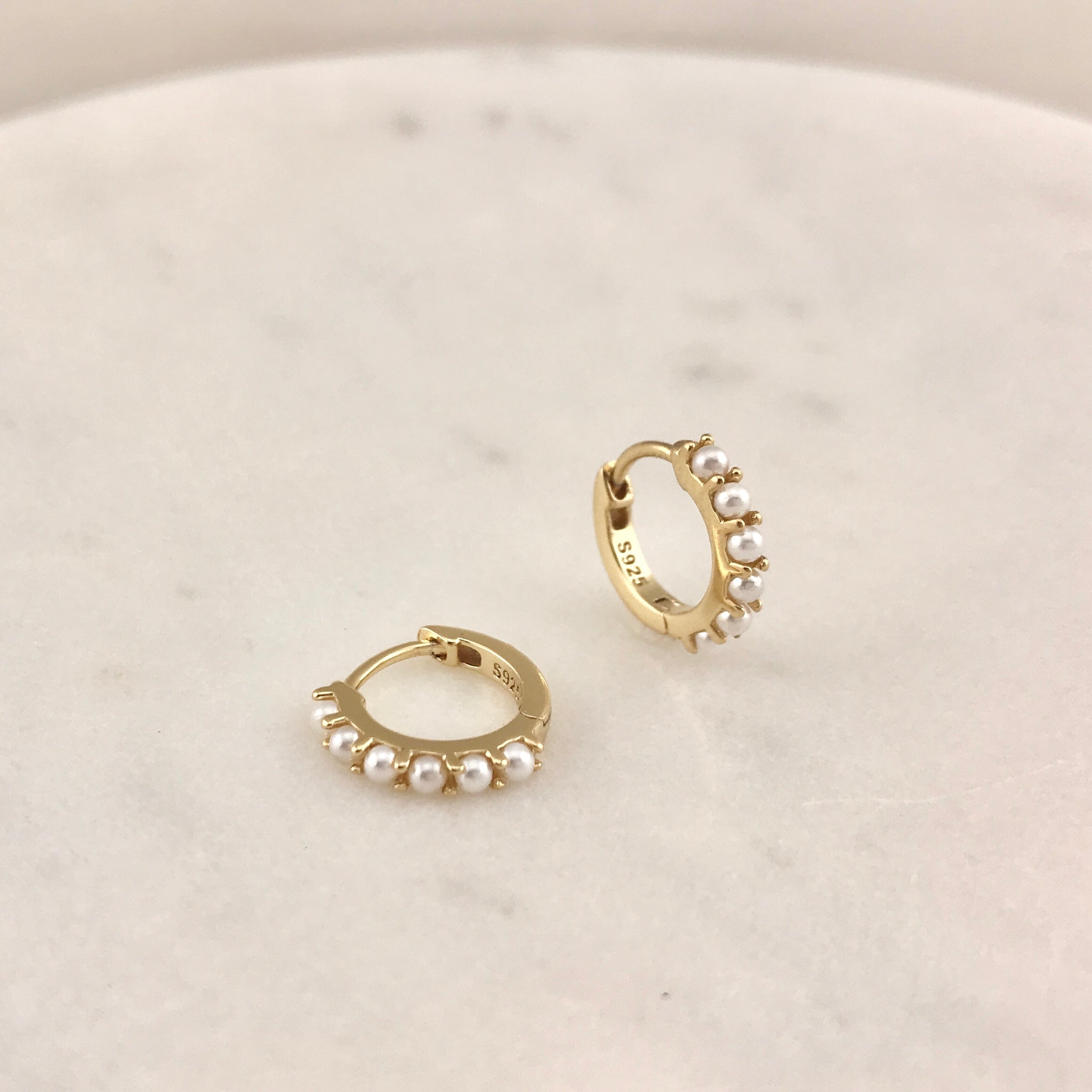 These tiny 18K Gold Vermeil over 925 Sterling Silver pearl huggies are ideal for customers who are looking for something unique.Makes a great addition to any earring collection! Please advise these are small great for small piercing or second holes.