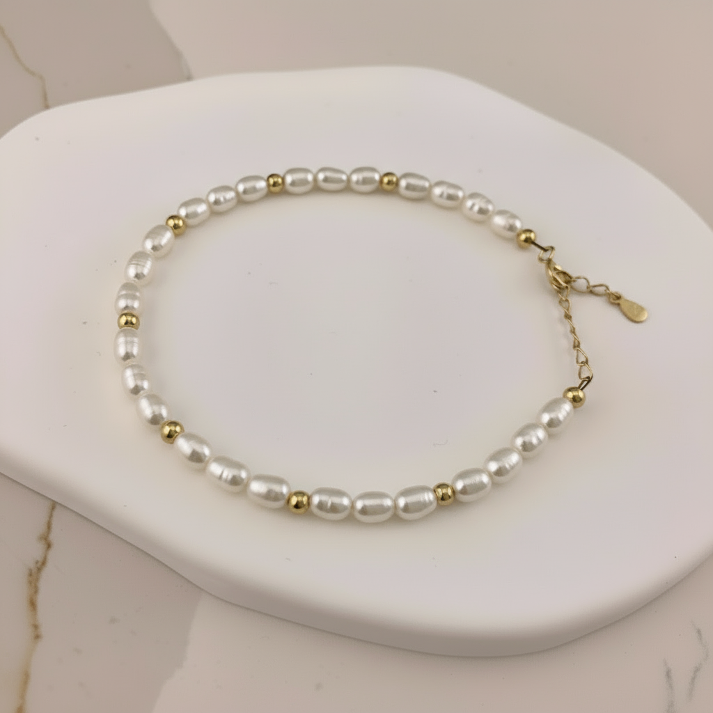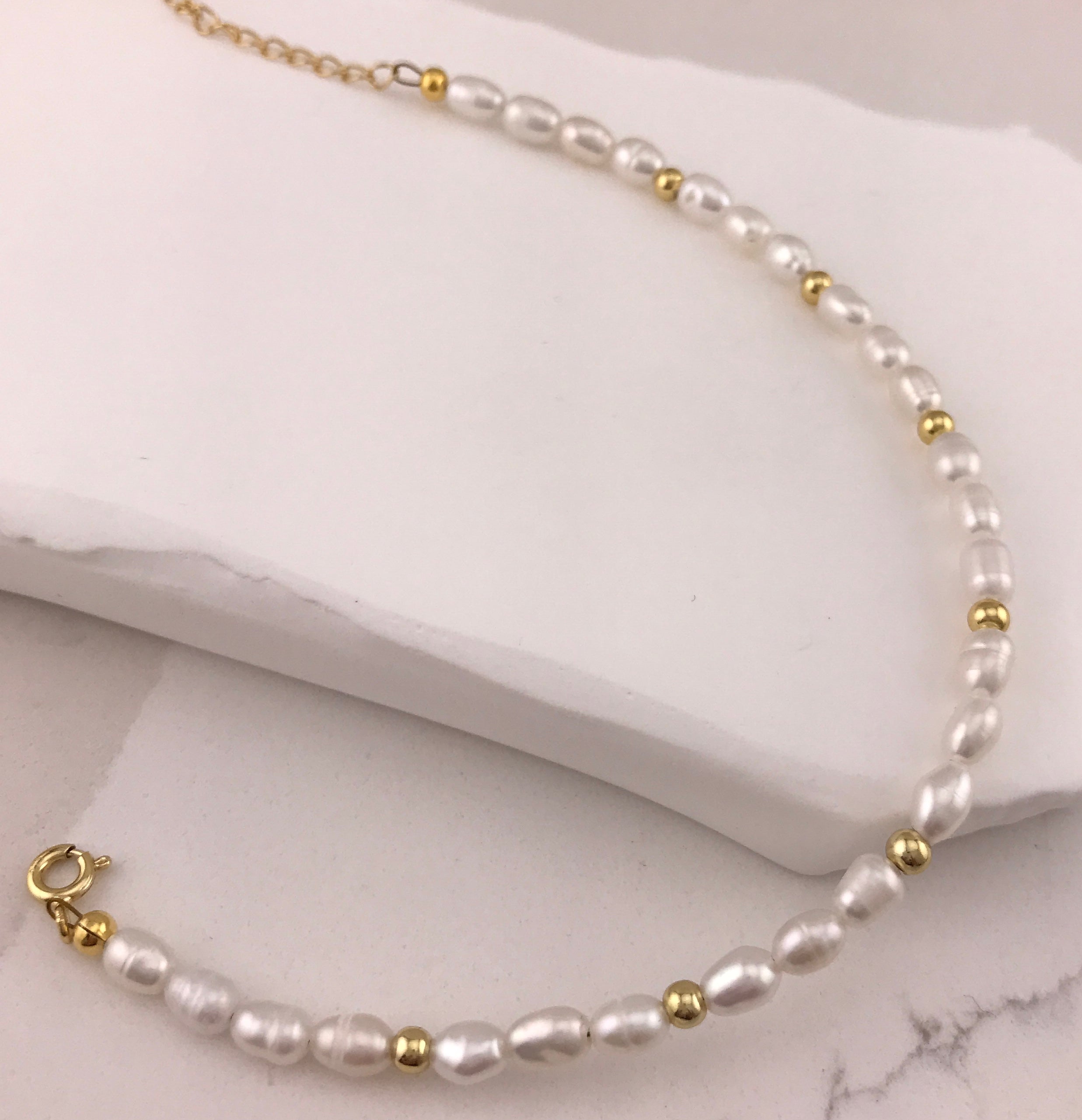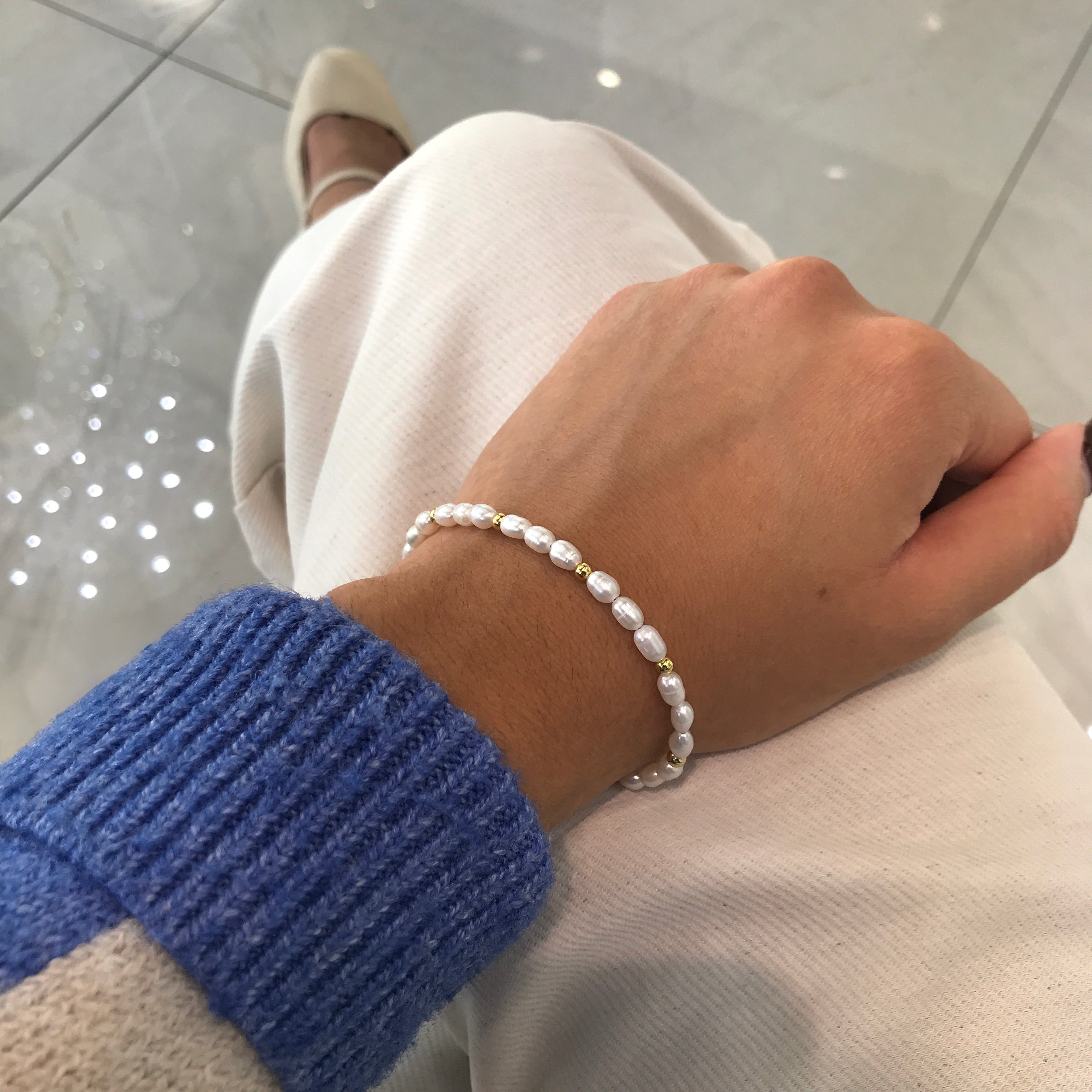 Pearls will always be a classic, but they are oh so hot right now! This dainty pearl bracelet features freshwater pearls threaded along with tiny 18k Gold Vermeil over 925 Sterling Silver beads. So pretty, trendy and elegant, makes a great gift! Keep shopping for the matching necklace and earrings!