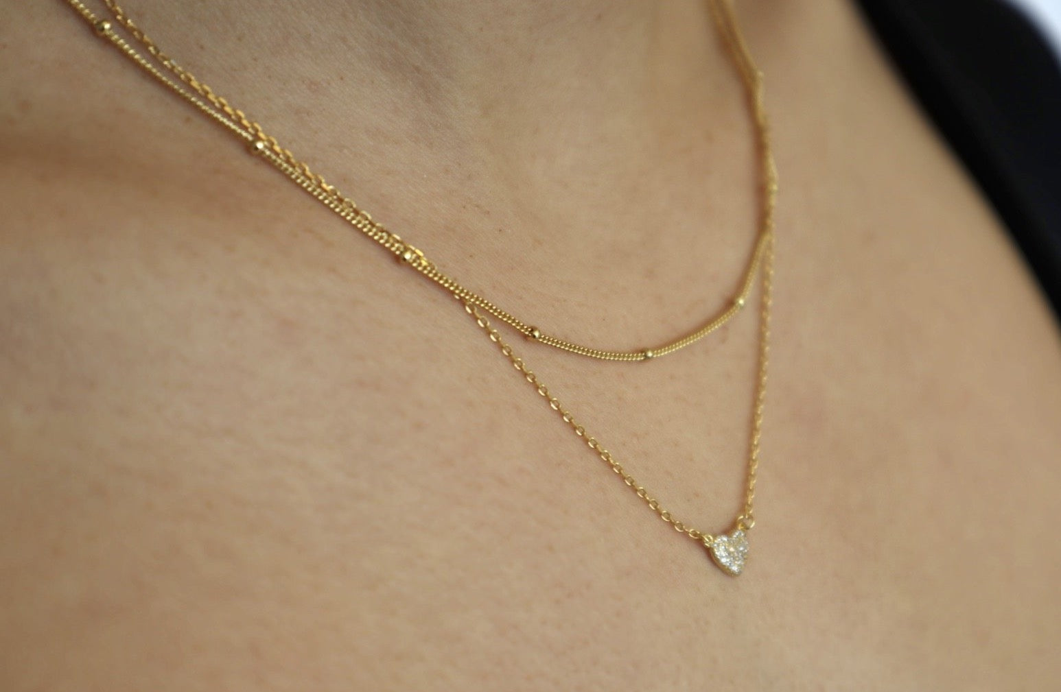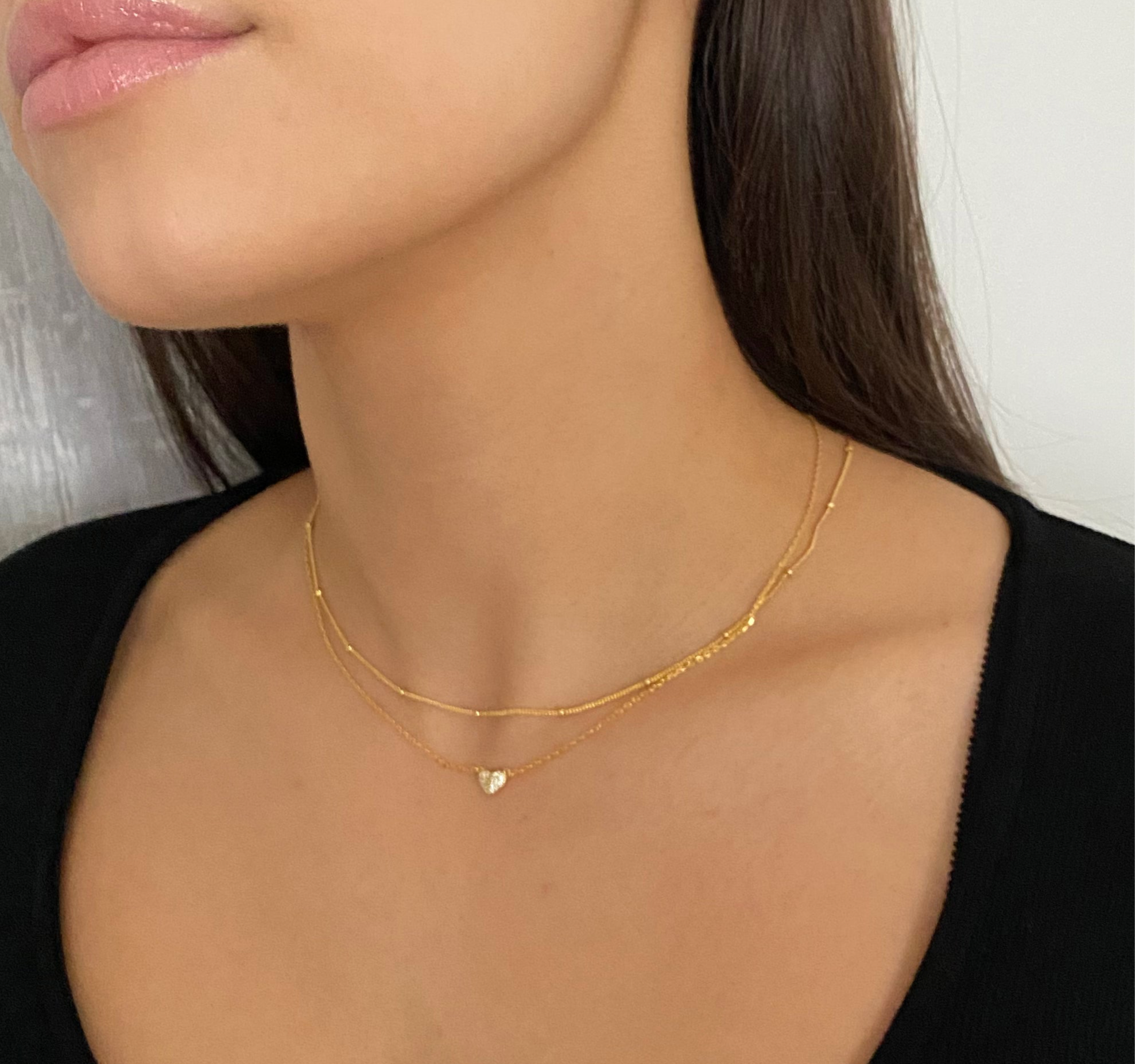 This beautiful 18k Gold Vermeil over 925 Sterling Silver necklace, featuring a Cubic Zirconia filled heart is the perfect gift to tell someone how much you love them. Beautiful to wear on its own or to layer with other dainty pieces
