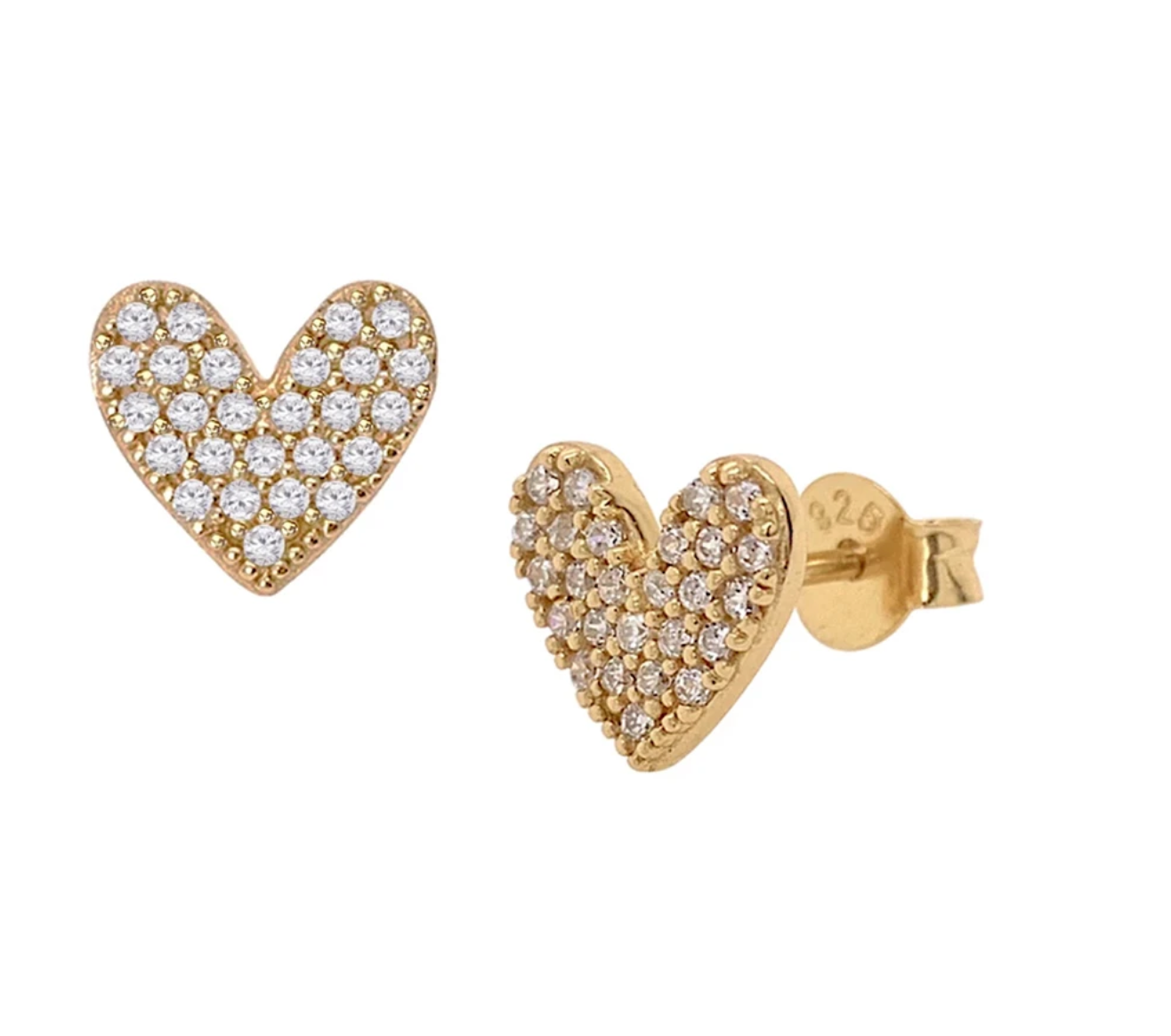 Beautiful and classic, 18k Gold Vermeil over 925 Sterling Silver heart stud with Cubic Zirconia earrings, are ideal for multiple piercings and perfect for adults and kids.