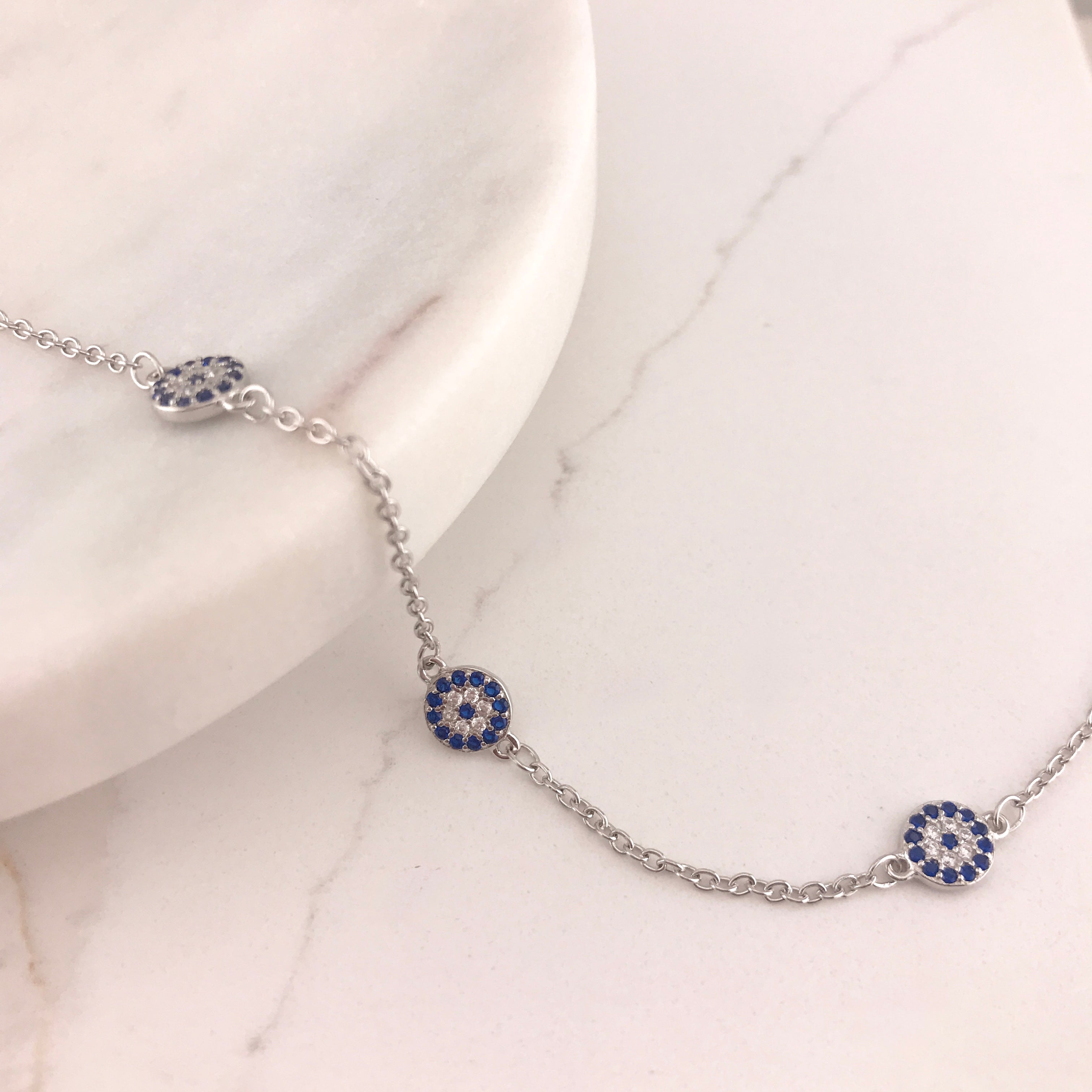 The evil eye is given for good karma, positive energies, and protection against the evil eye. This bracelet is perfect for everyday wear on its own, or layering it with other bracelets.