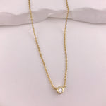 Effortless, elegant, and designed for everyday. This dainty gold-plated necklace features a bezel-set solitaire CZ stone that catches light with every move. Minimalist on its own, stunning layered with your favorites. It's the kind of piece you never take off — delicate, timeless, and quietly confident.