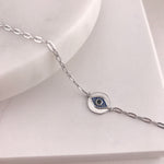 Crafted in sterling silver, the Stella Evil Eye Paperclip Bracelet adds a modern twist to a classic symbol. The CZ stones bring subtle sparkle to the protective evil eye charm, while the paperclip chain keeps the look stylish and refined. A versatile piece for daily wear or meaningful gifting.
