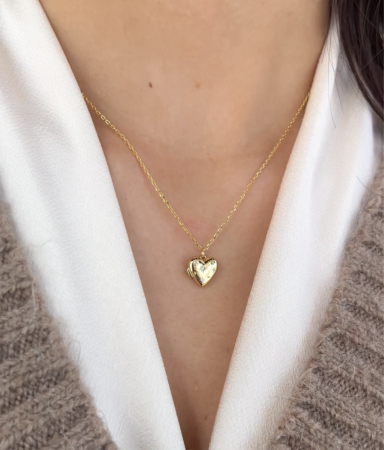 925/18k Vermeil CZ Star Setting Heart Locket Necklace, a treasure of sparkle and affection.