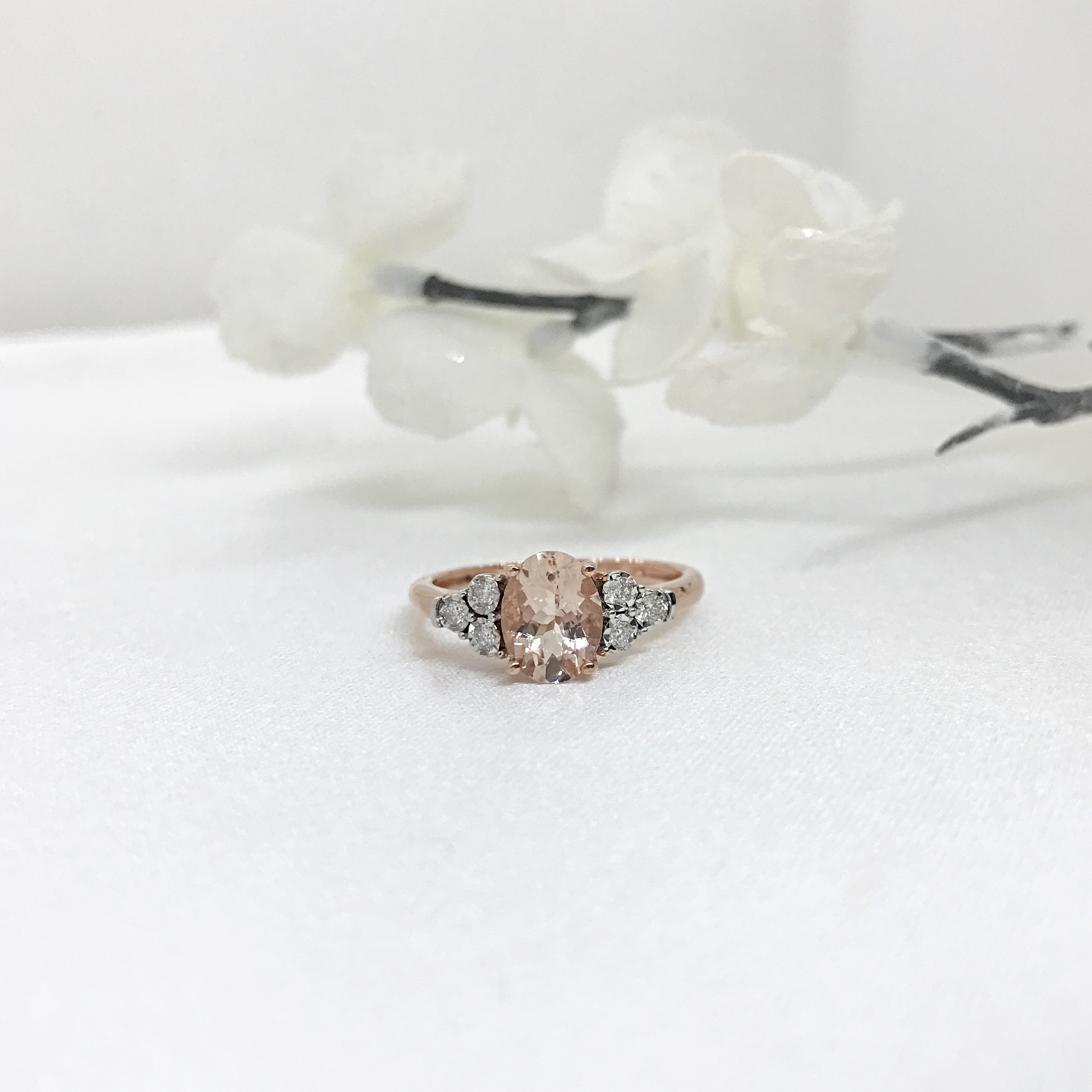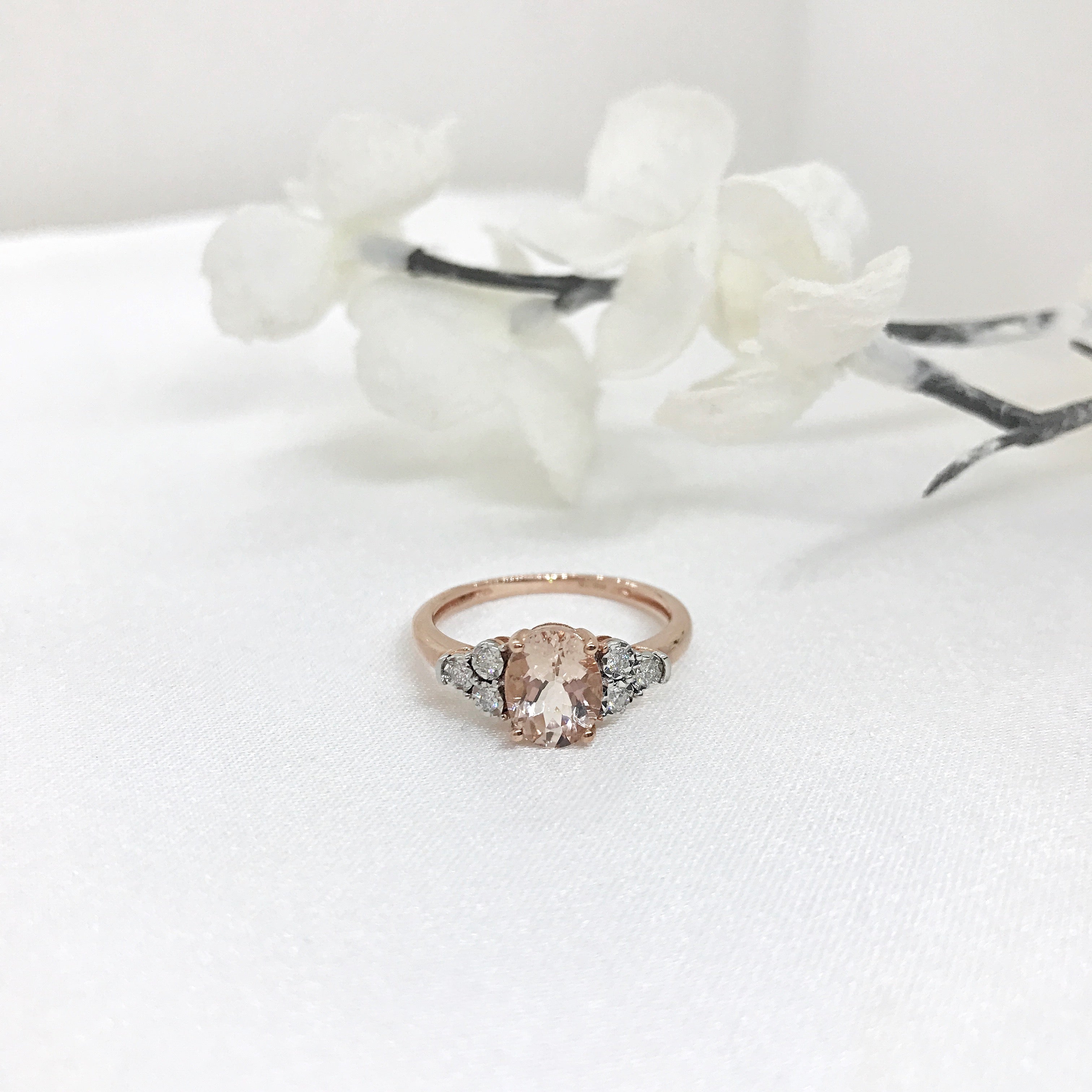 Give your fingers the attention they deserve with this 10k Rose Gold Ring featuring an oval Morganite Gemstone in the center and three-stone diamonds on each side. Morganite has a light pink feminine appeal that matches anything your wearing. It's the perfect gift to tell someone how much you love them since morganite is the stone of love!