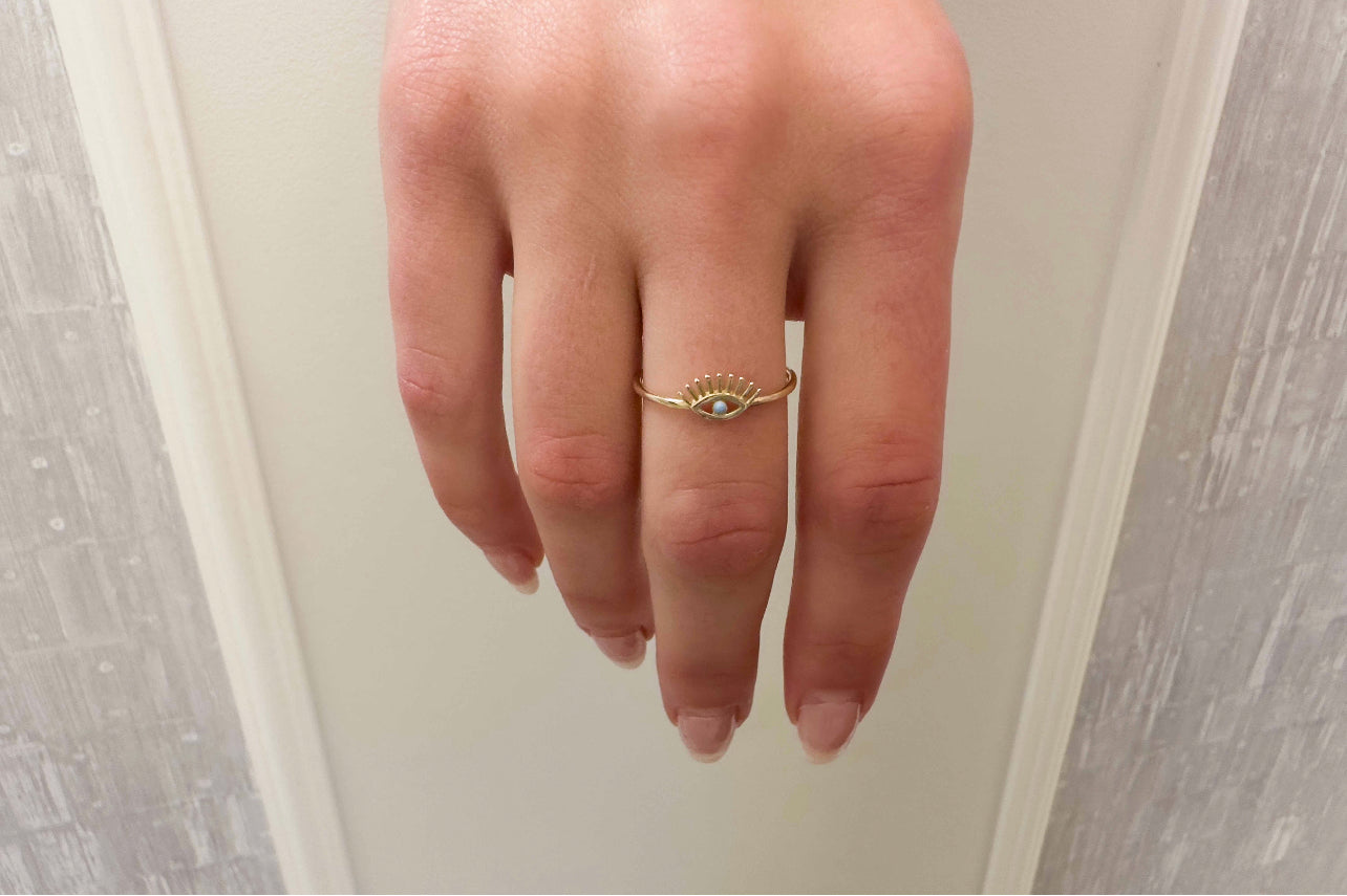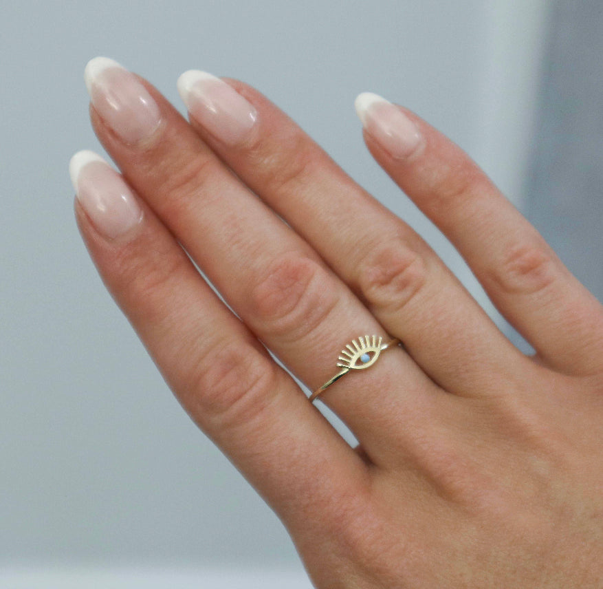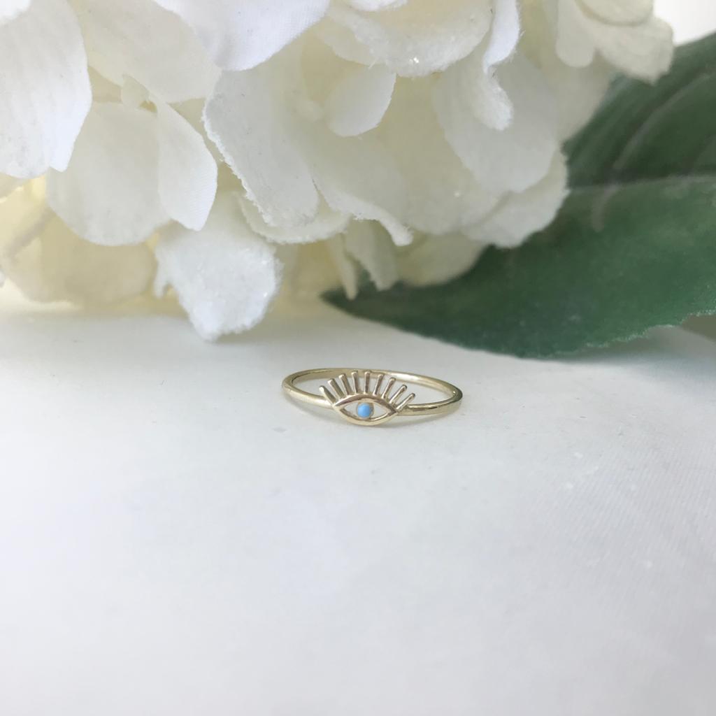 This 10k Yellow Gold Evil Eye with Blue Enamel Centre is a fun and cute ring to wear. The evil eye is worn for good karma, positive energies, and protection against the evil eye making this a perfect addition to any collection. Wear it on its own or layering with other rings.