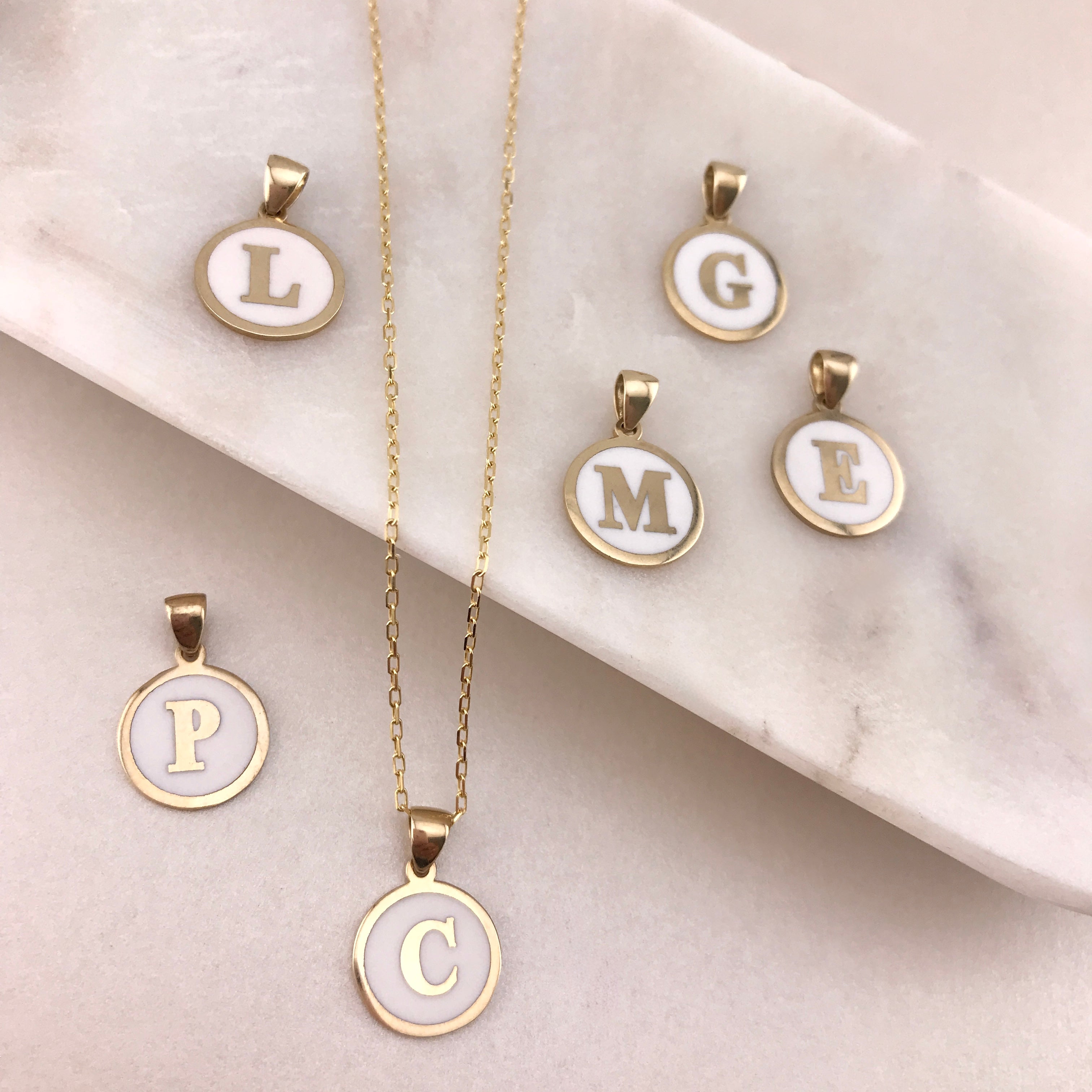 Our 10k Yellow Gold white letter disc charms are a great addition to a layered look. Customize your necklace, bracelet or pins with your initial or those of loved ones!