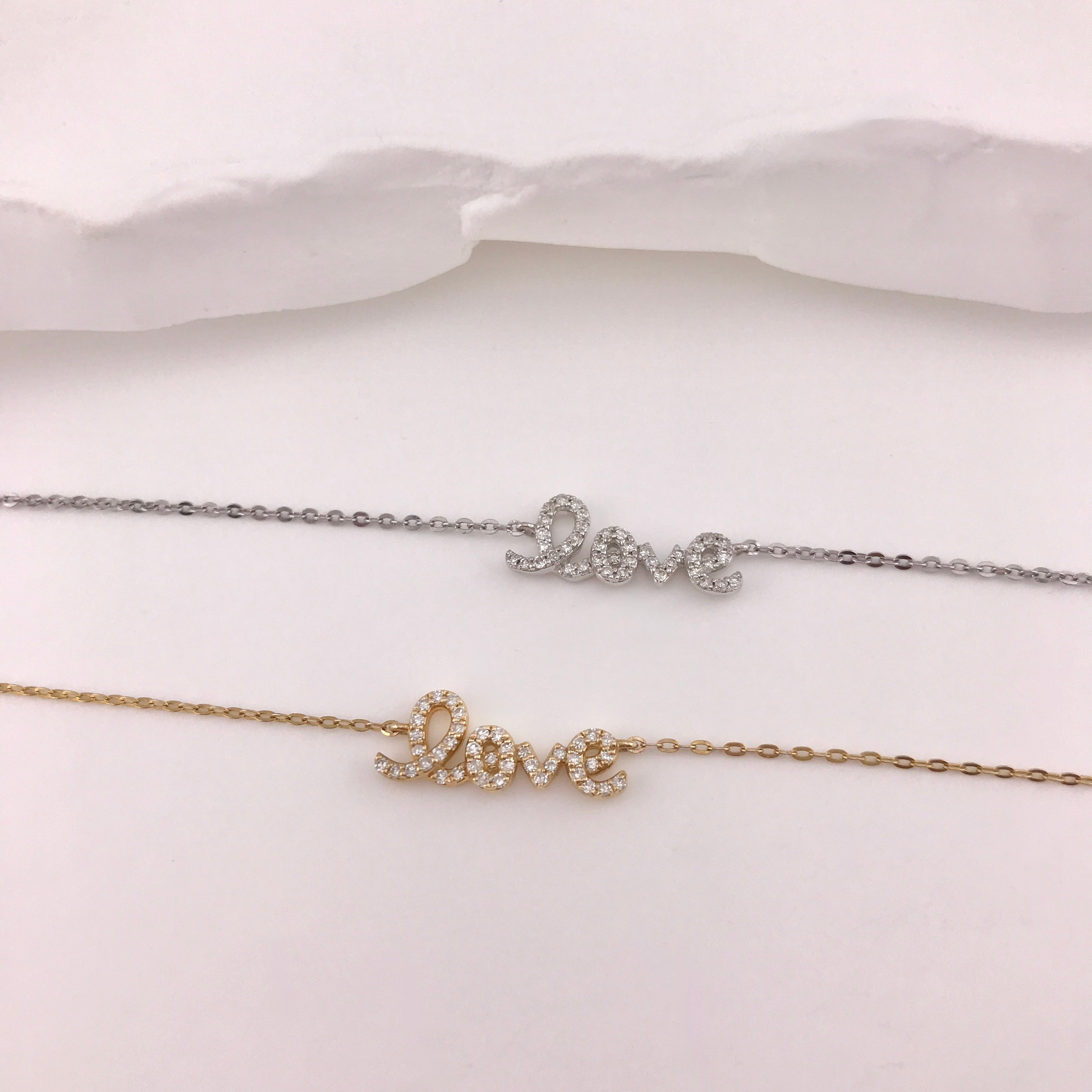 Fun and Cute, this 10k Gold LOVE Diamond Bracelet is a trendy must-have addition to your arm candy. This bracelet is a great way to show someone how much you love them. Perfect statement on its own or with other pieces.