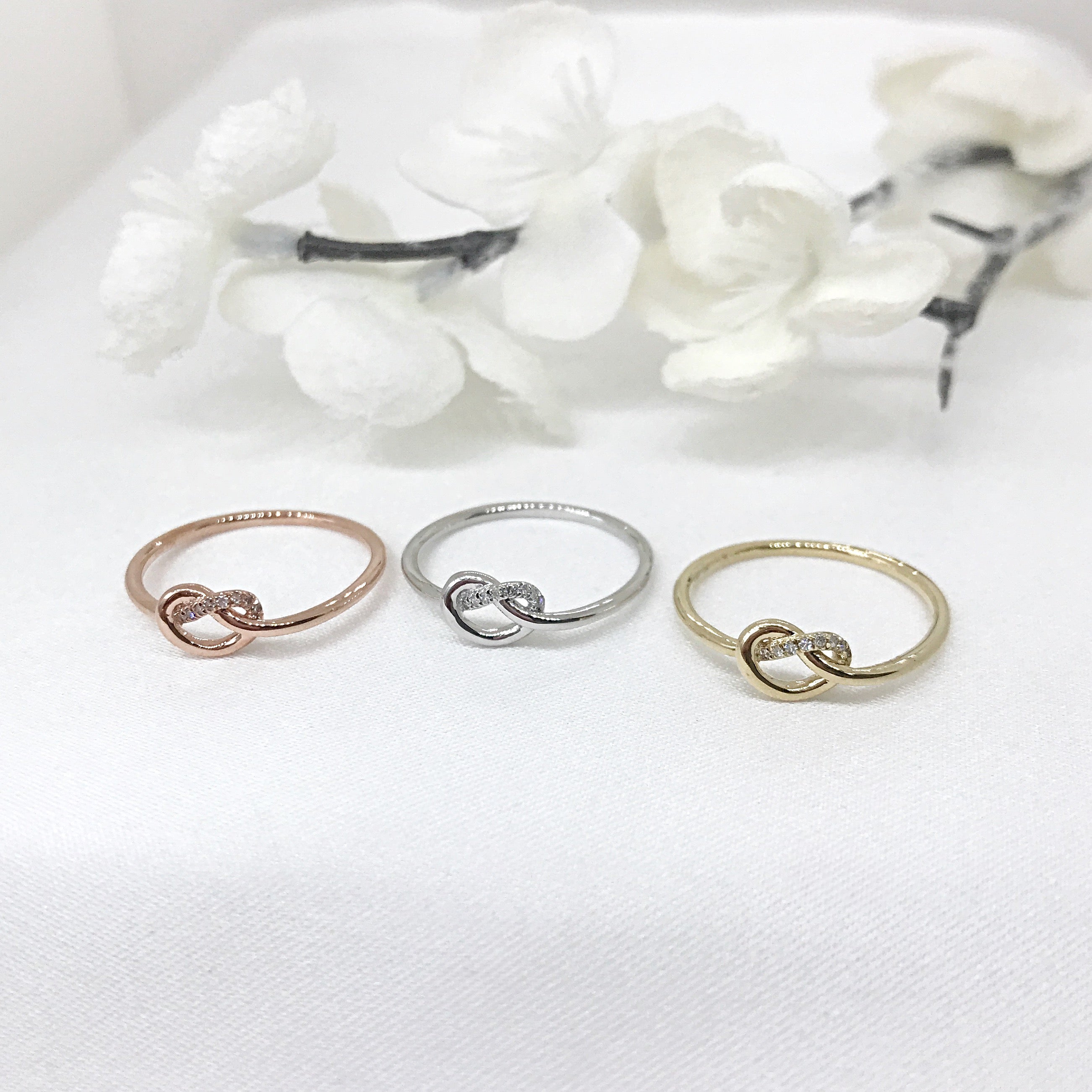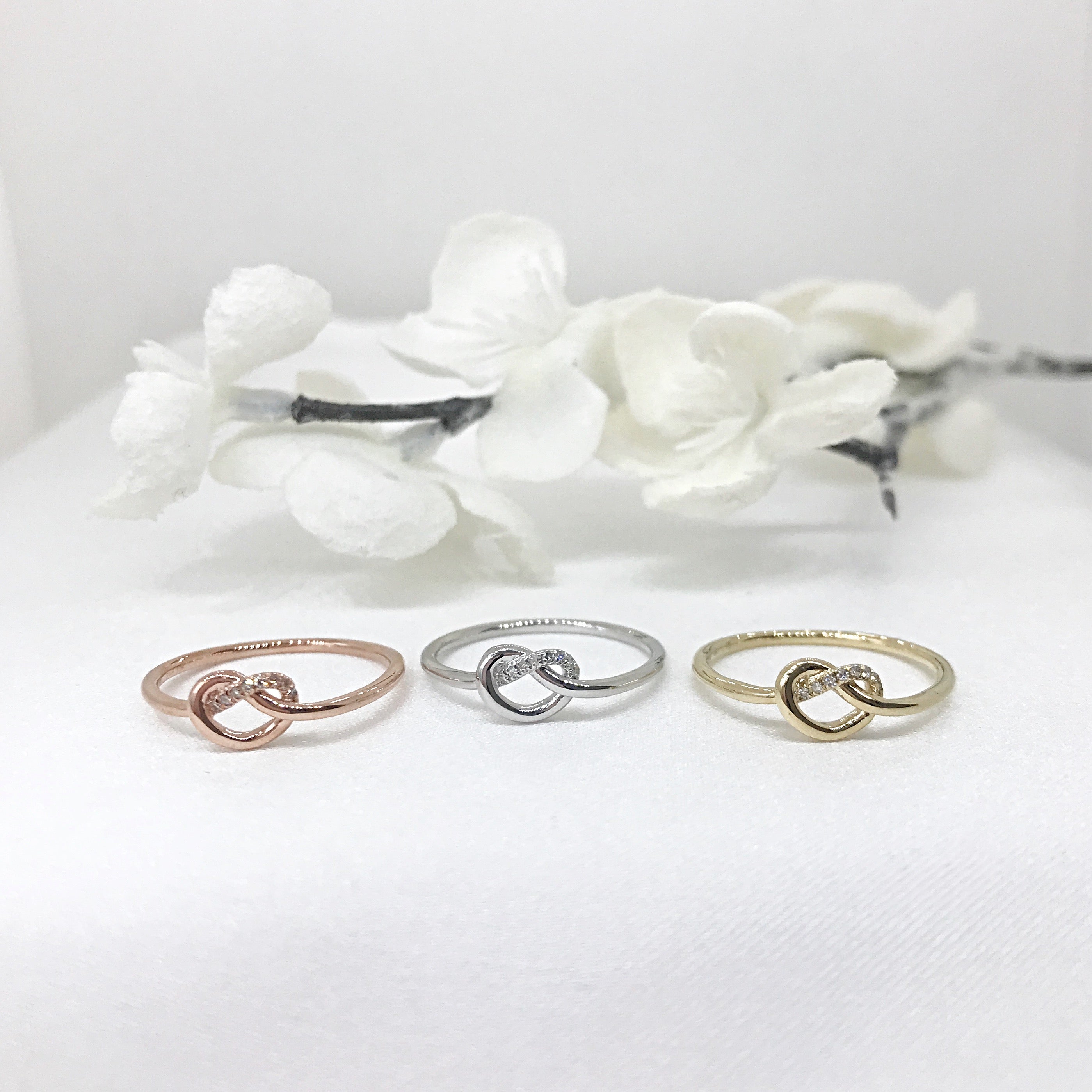 Fun and Cute, this 10k Gold Knot Diamond Ring is a trendy must-have piece. A great addition to any collection, its a perfect statement on its own or layered with other pieces.
