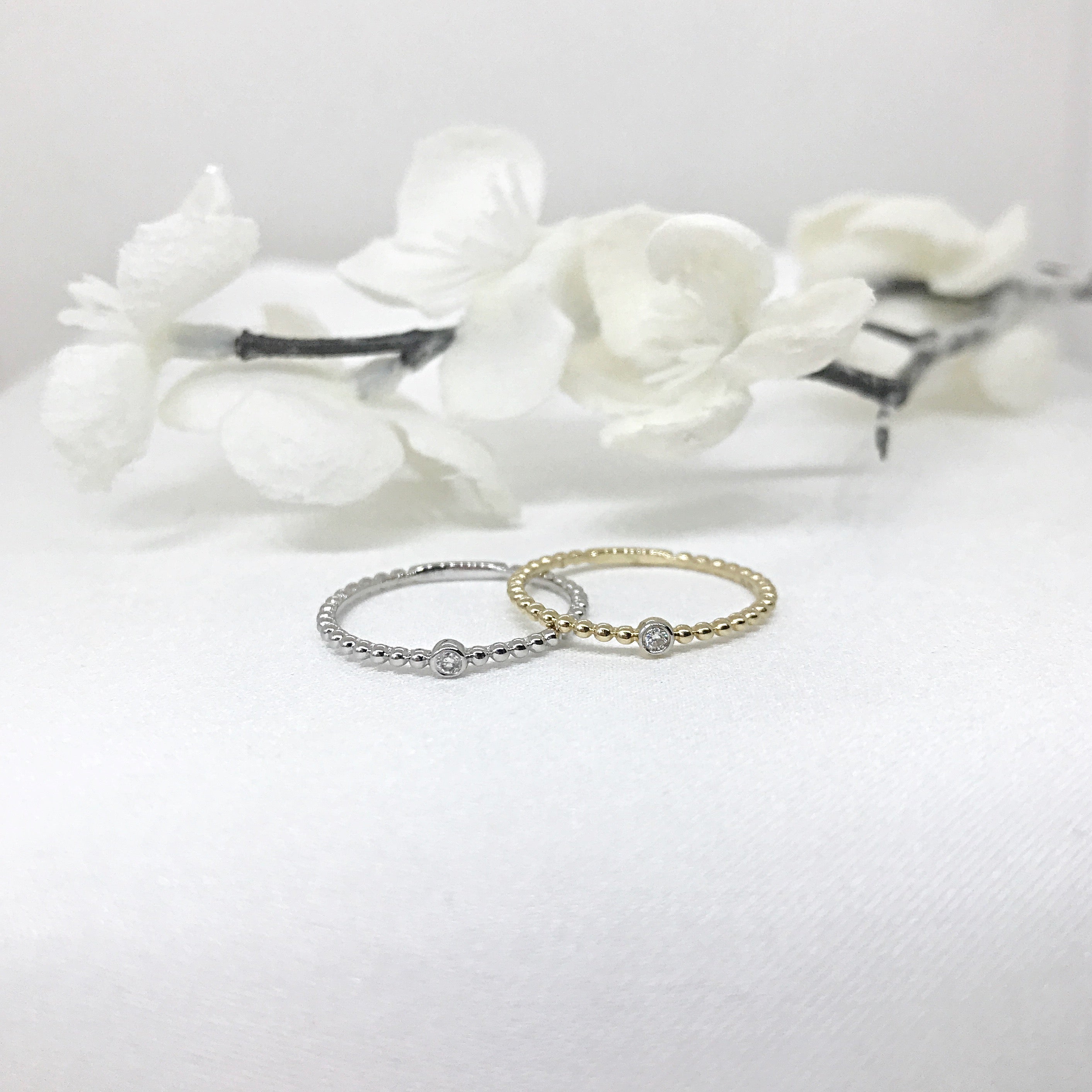 10k Gold Stackable Solitaire Bead Diamond Ring