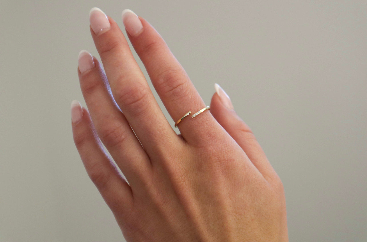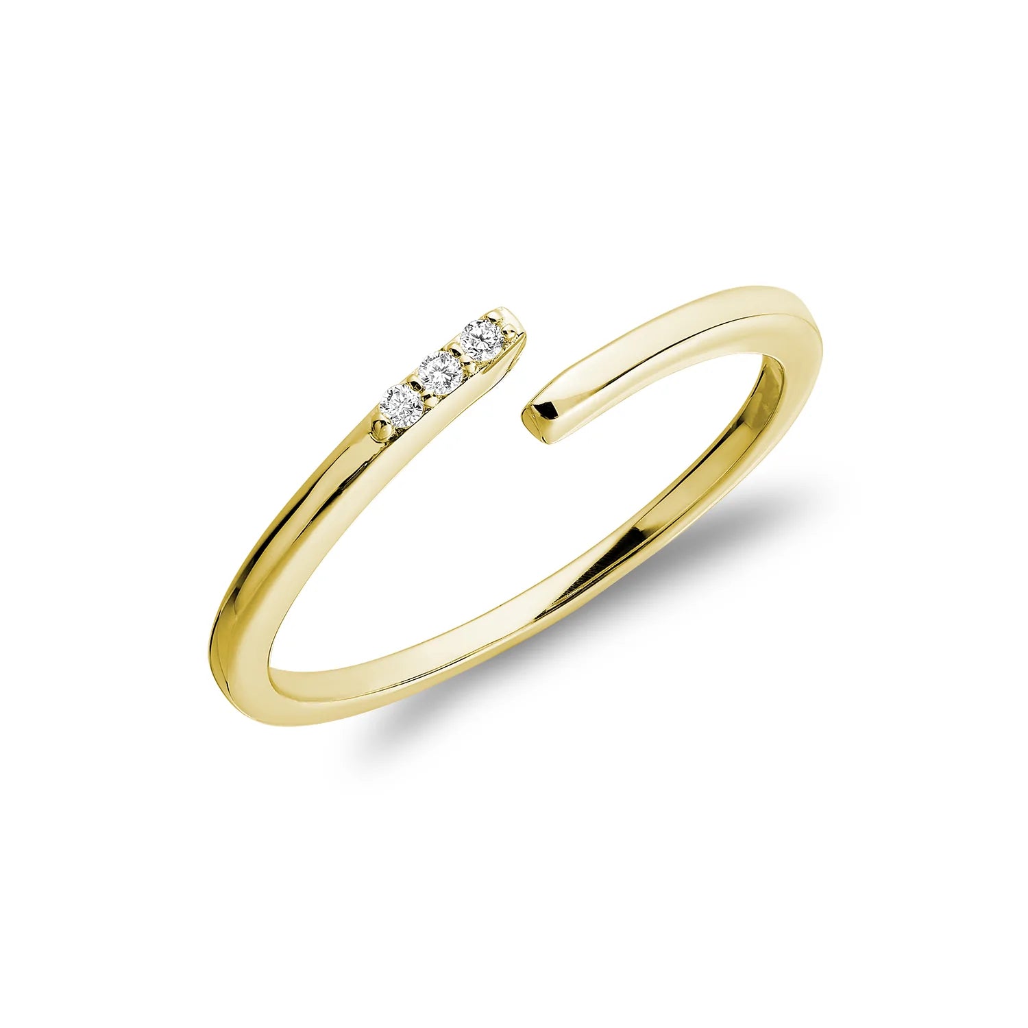 This trendy, must-have 10k Gold Stackable Three Stone Bypass Ring is the perfect gift, especially since its adjustable. Simply beautiful with a touch of sparkle, looks amazing on its own or stacked with other pieces.