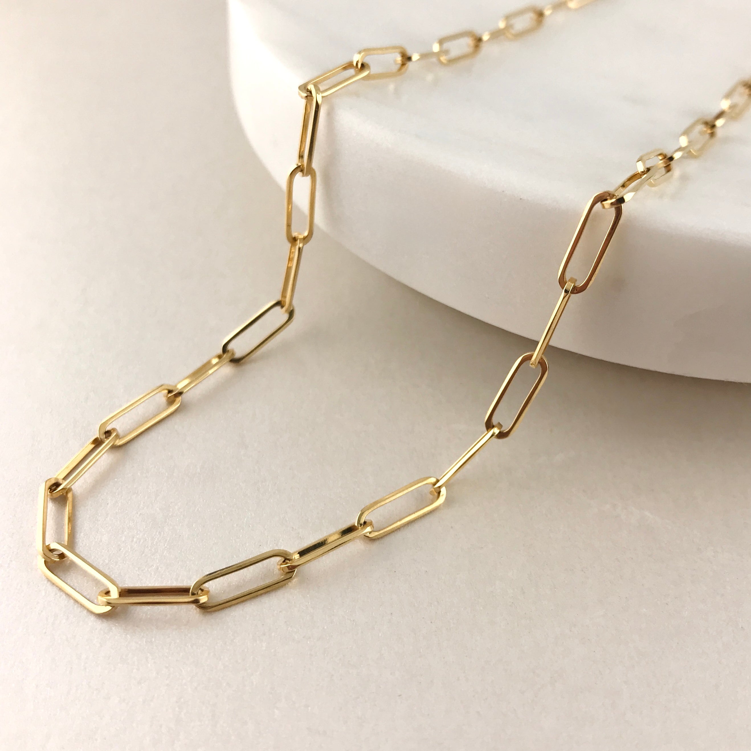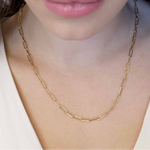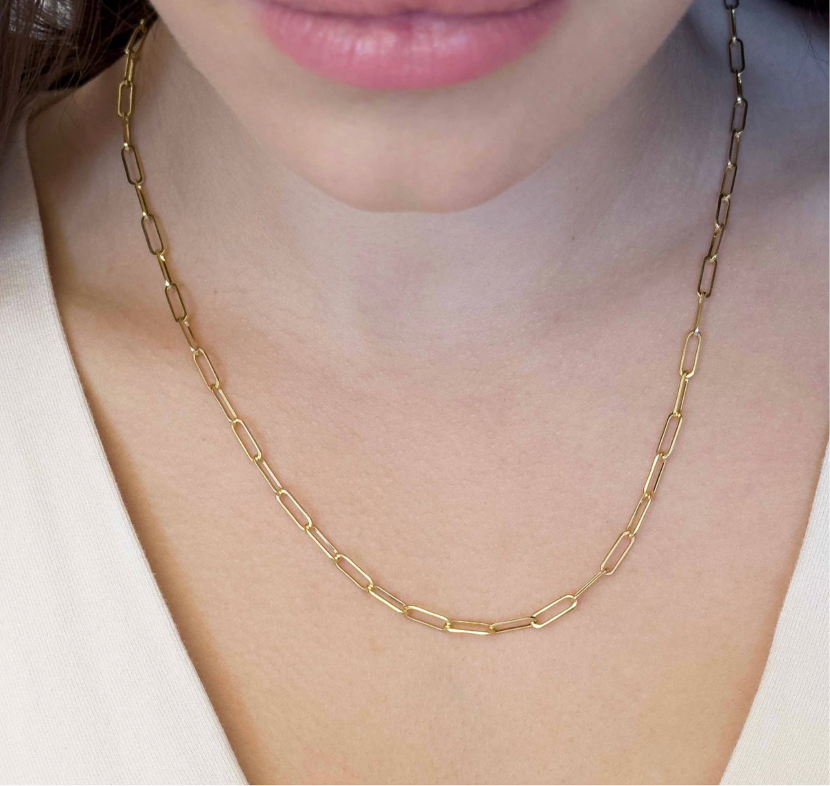 Elegant, fashionable, and bold, this 10k yellow gold paperclip necklace is the latest trend! Available in 16 inch, 18 inch and 20 inch. More lengths available to purchase in store. This style is also available in a matching bracelet.