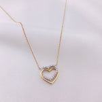 This beautiful 10k Gold double heart necklace is a beautiful gift. Featuring one Yellow Gold heart interlocked with a Cubic Zirconia heart, this is a beautiful way to show someone how much you love them!