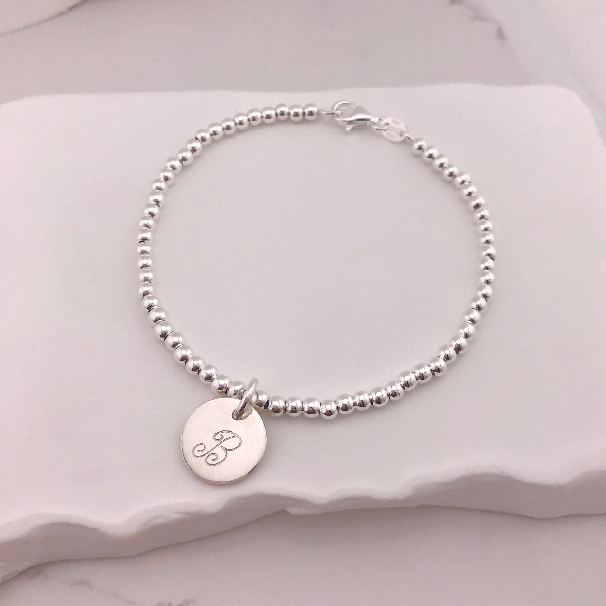 Engravable- 925 Sterling Silver Ball Bracelet with Circle Charm