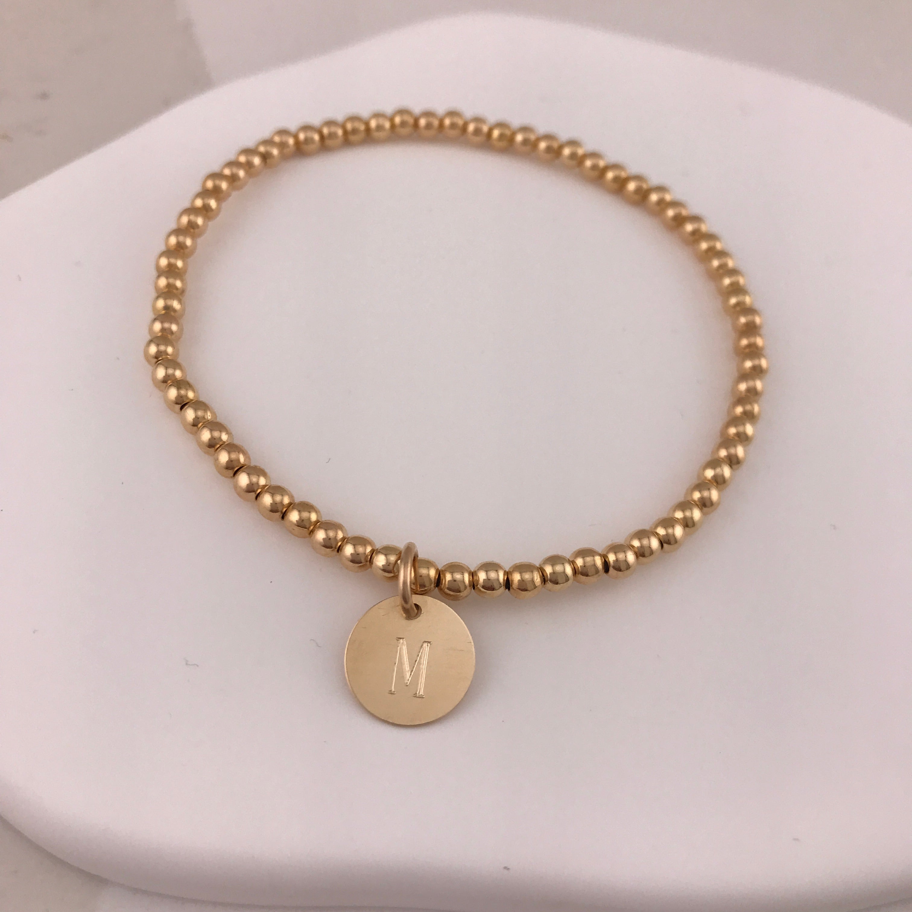 Engravable- Gold Filled Stretch Bracelet with Circle Disc