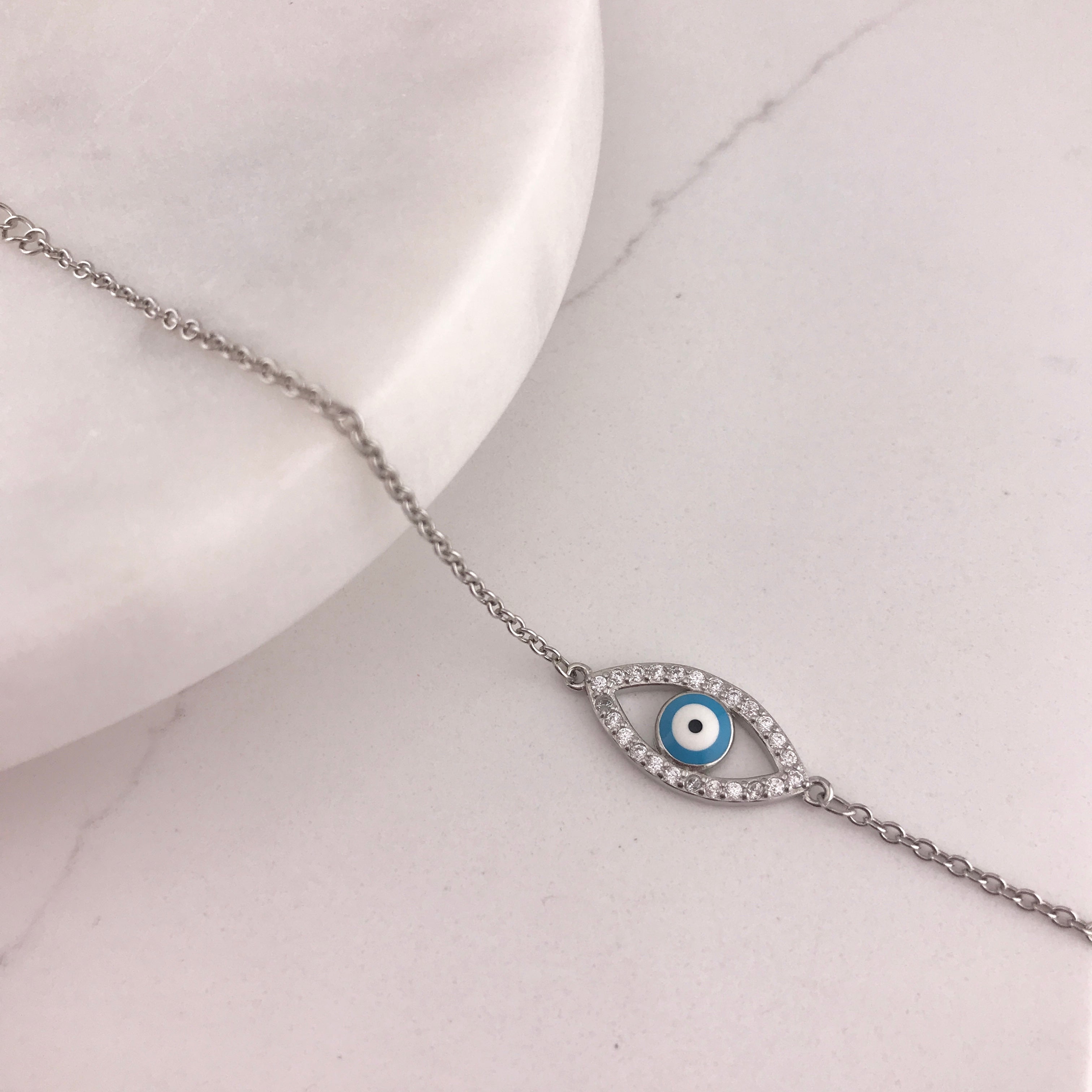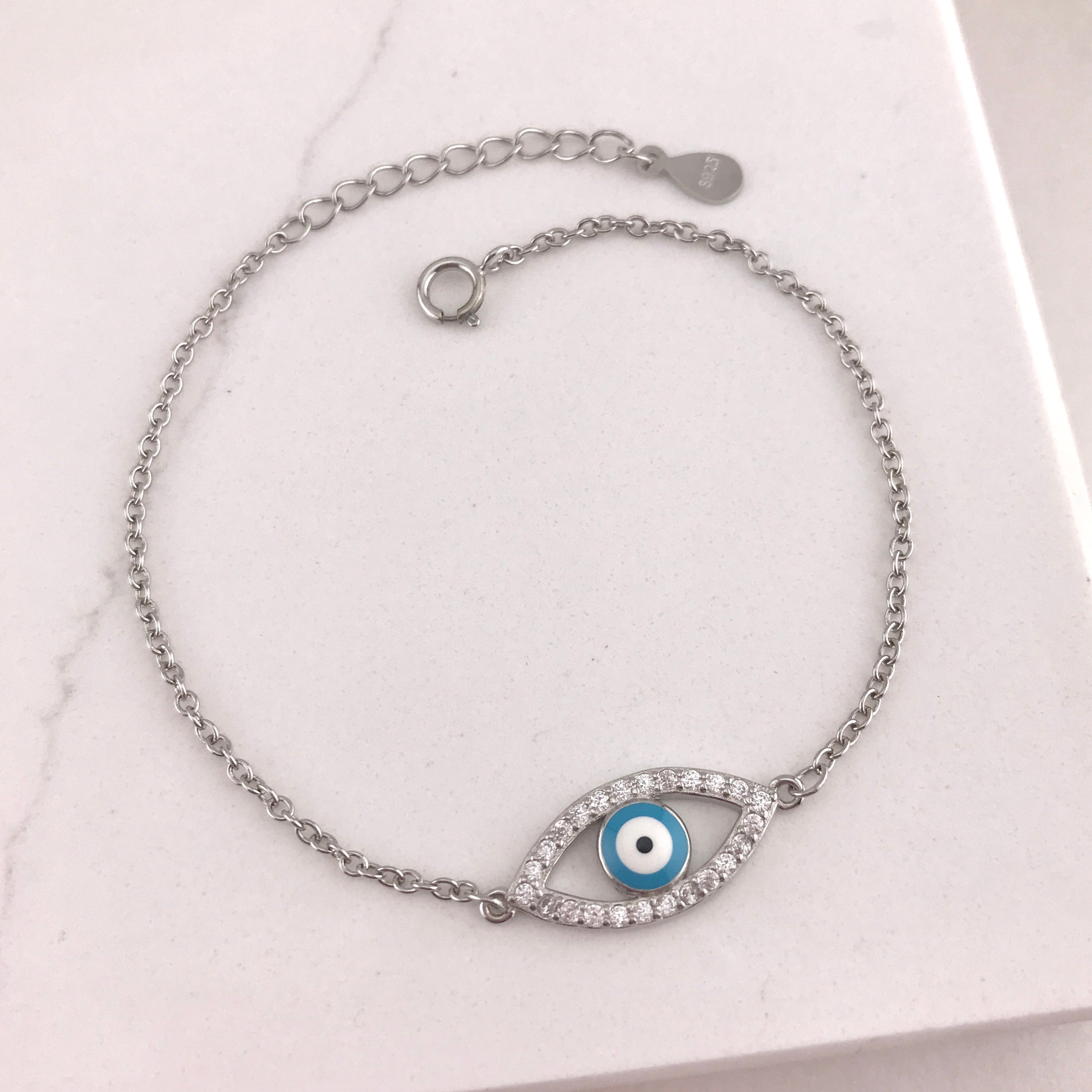 925 Sterling Silver Evil Eye with CZ Bracelet
