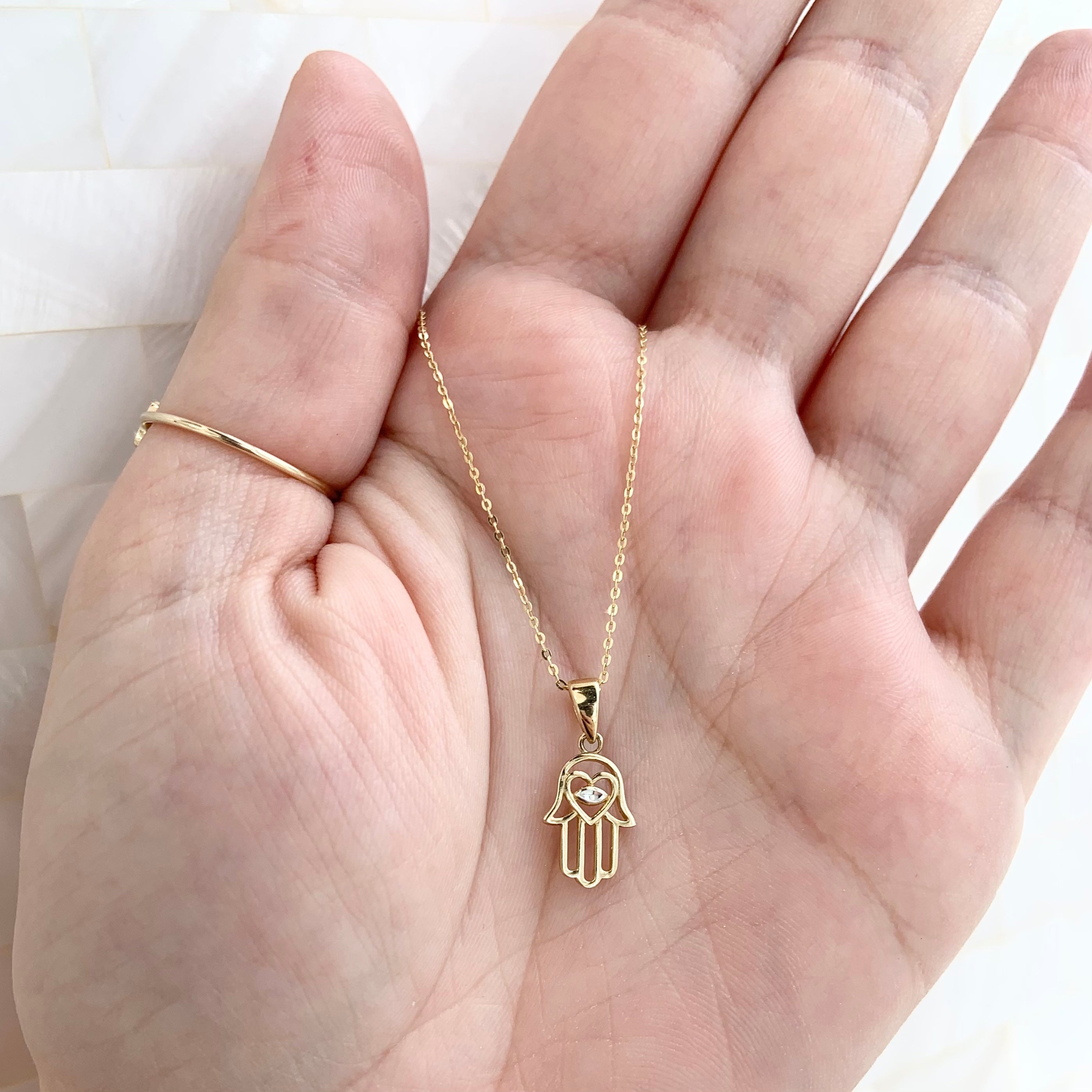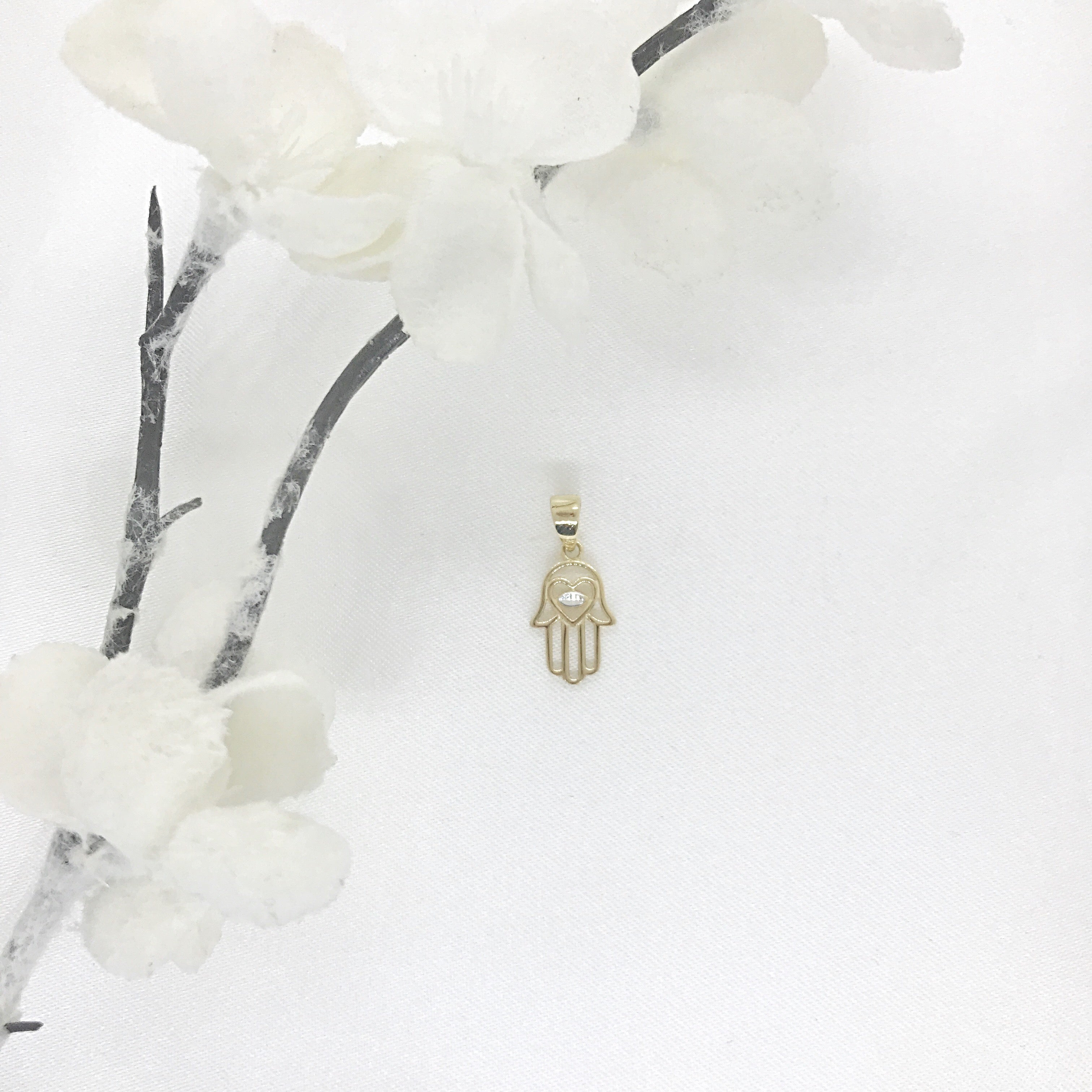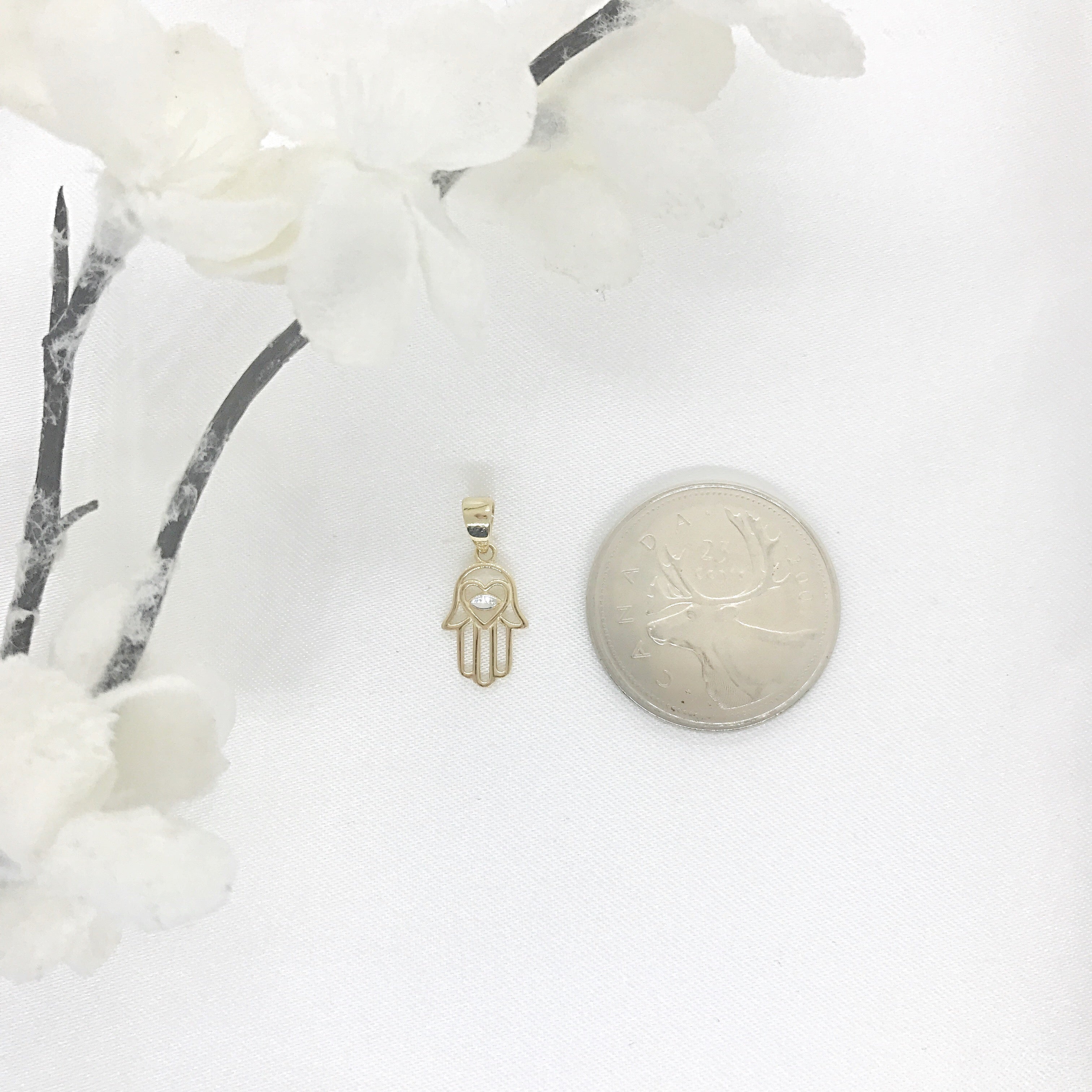 The Hamsa is a symbol for the Hand of God, and is given for protection. The evil eye is given for good karma, positive energies, and protection against evil. This beautiful 10k charm is perfect to add onto a necklace, bracelet or pins.