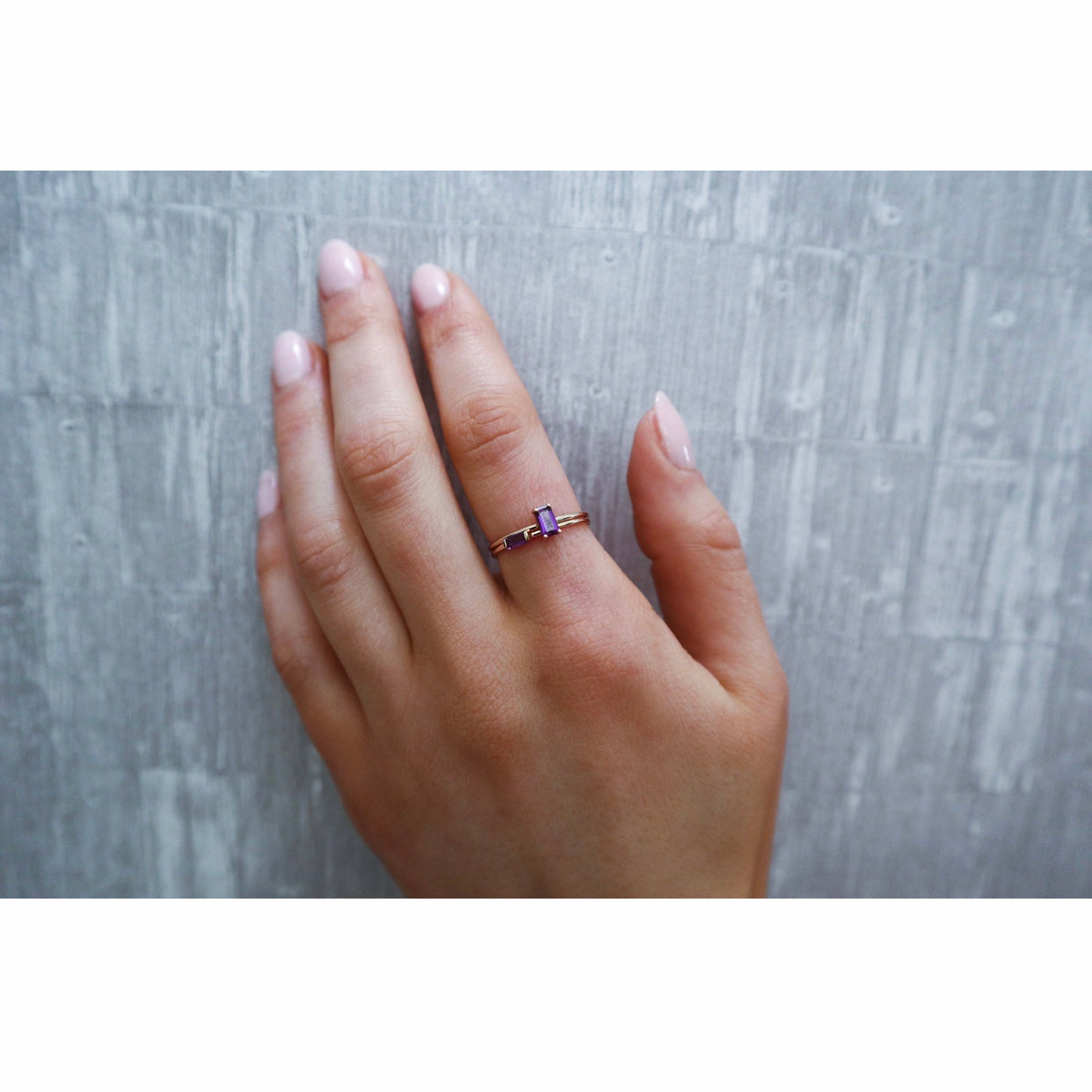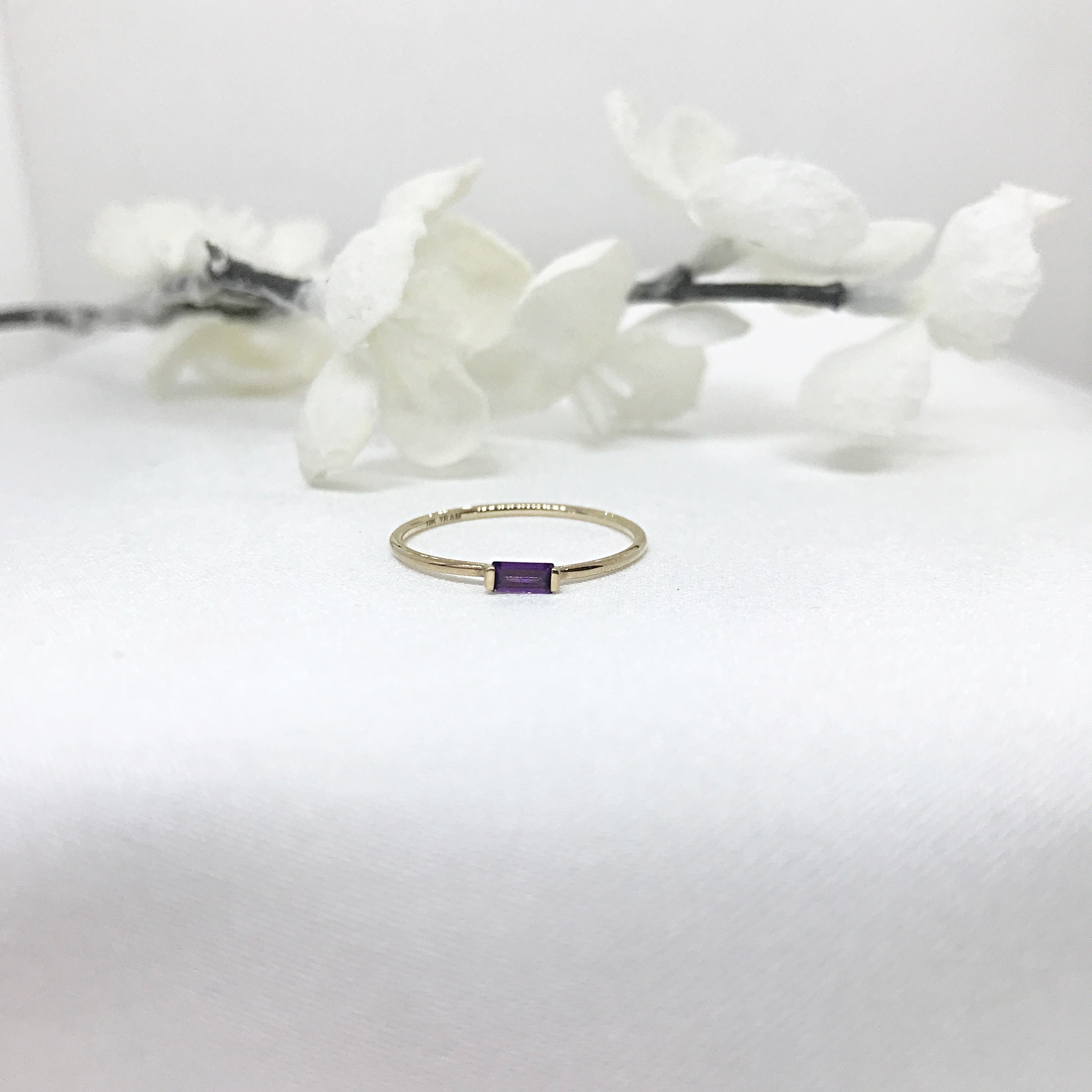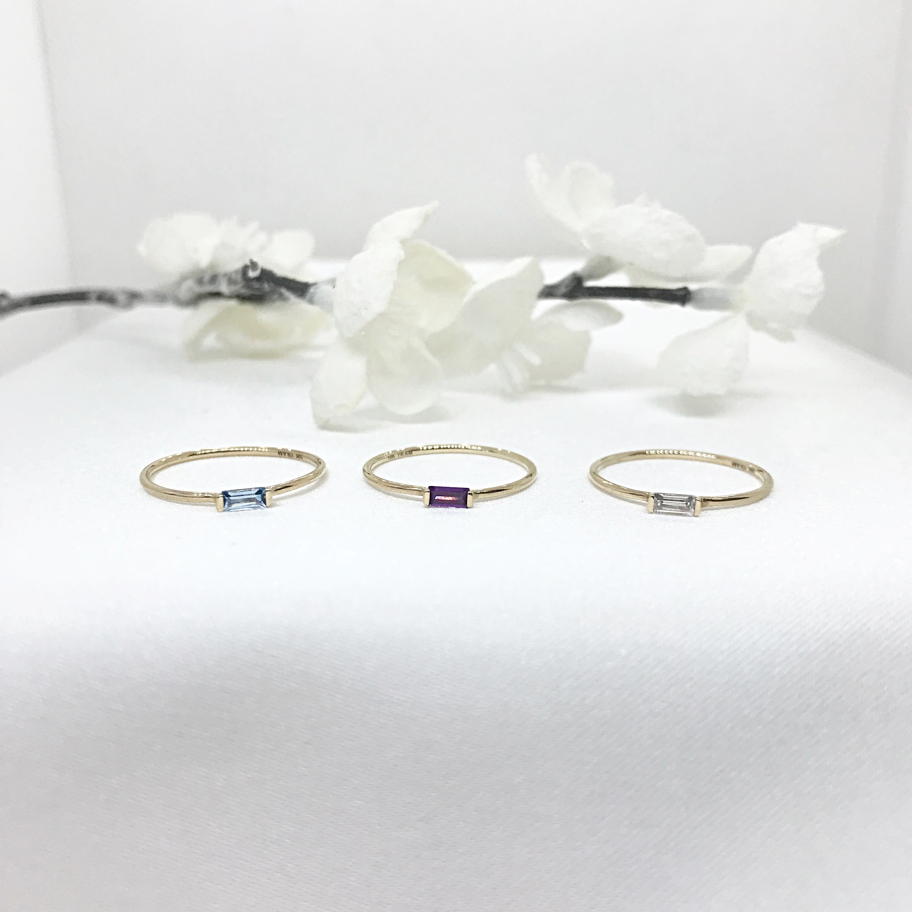 Our beautiful 10k Yellow Gold, synthetic birthstone horizontal baguette cut ring is a great gift for any occasion! Beautiful to stack, or to wear on its own. Keep shopping for various shapes and colors!
