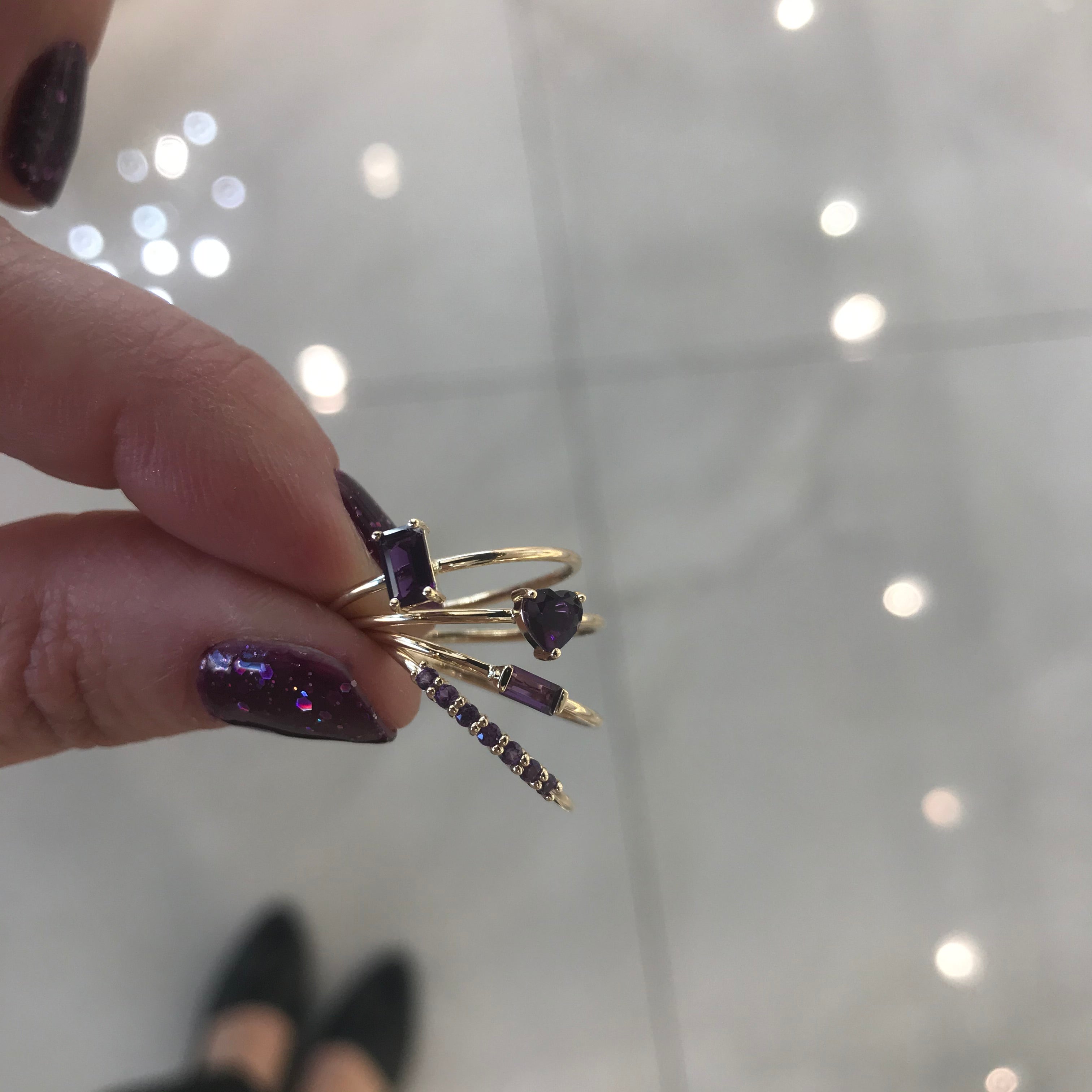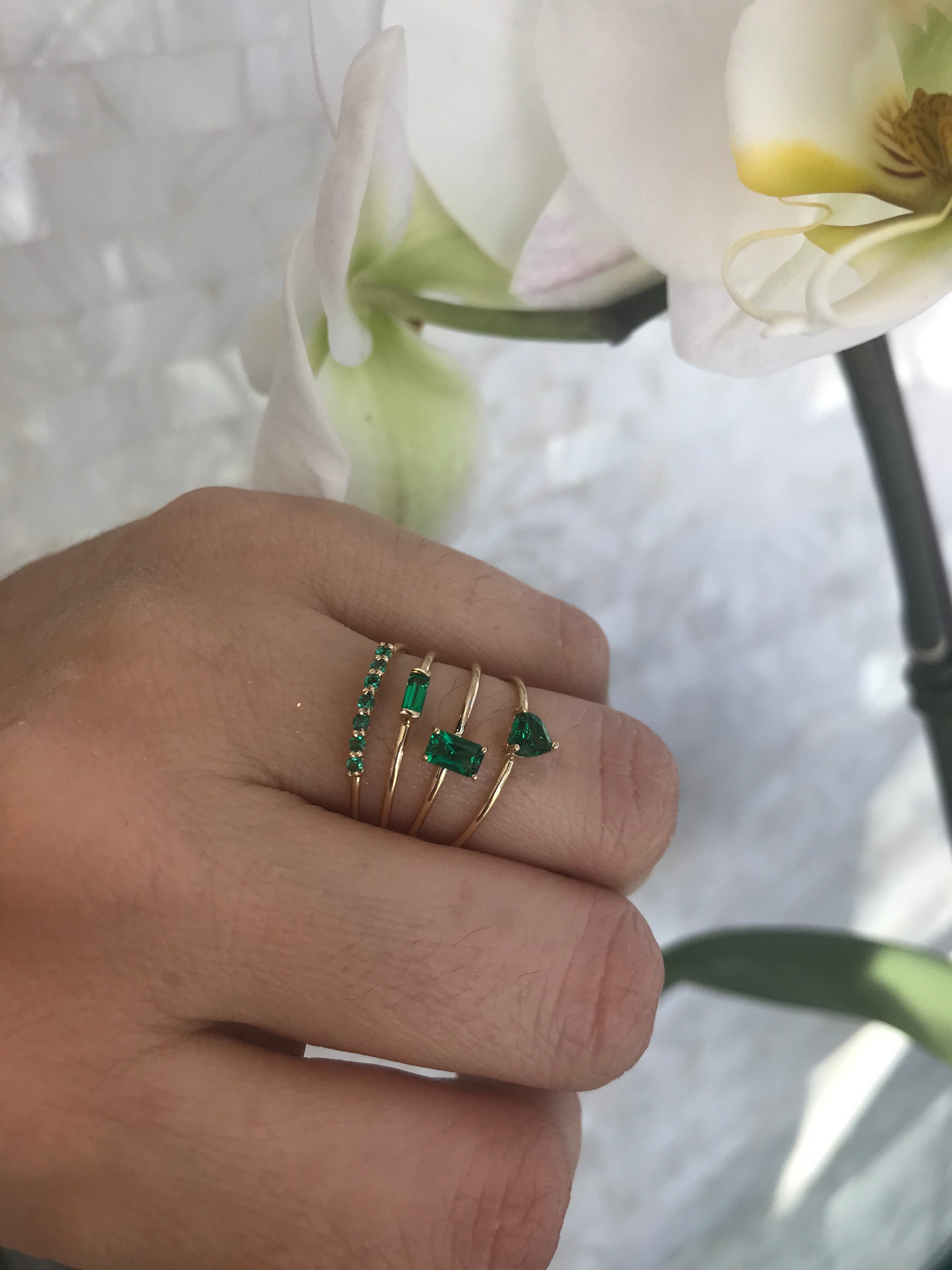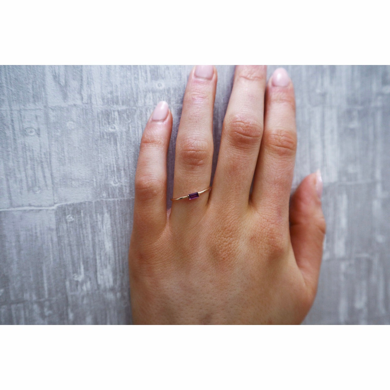 Our beautiful 10k Yellow Gold, synthetic birthstone horizontal baguette cut ring is a great gift for any occasion! Beautiful to stack, or to wear on its own. Keep shopping for various shapes and colors!