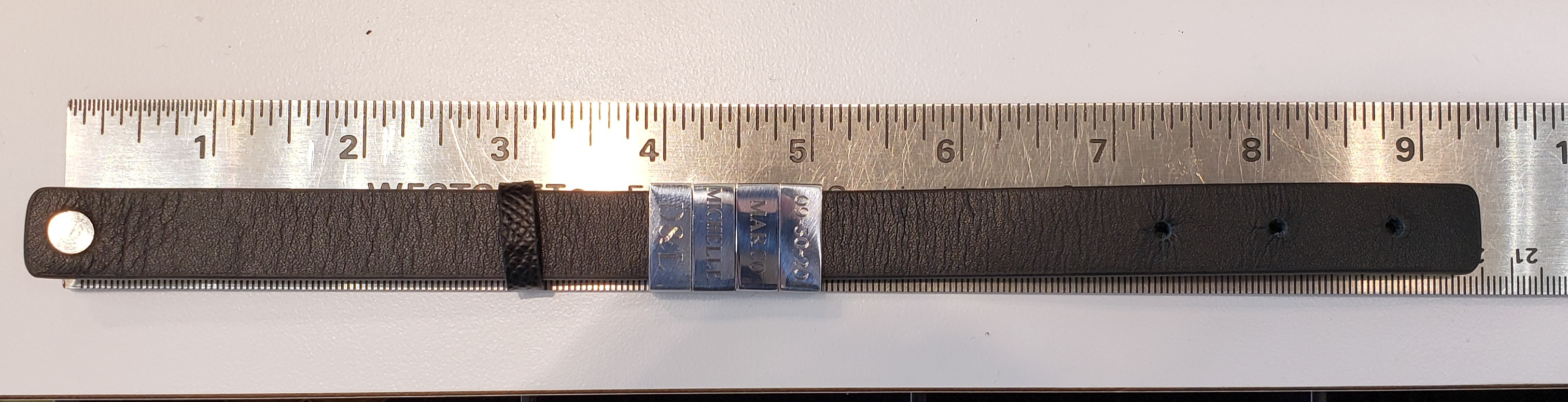 Perfect for Dads, this sentimental bracelet makes it easy to keep your loved ones close! This Genuine Leather Men's Bracelet can add up to 8 Stainless Steel Engravable charms, customizable to your personal preference. Add the names of your children, grandchildren or spouse, OR special dates like wedding days and anniversaries!