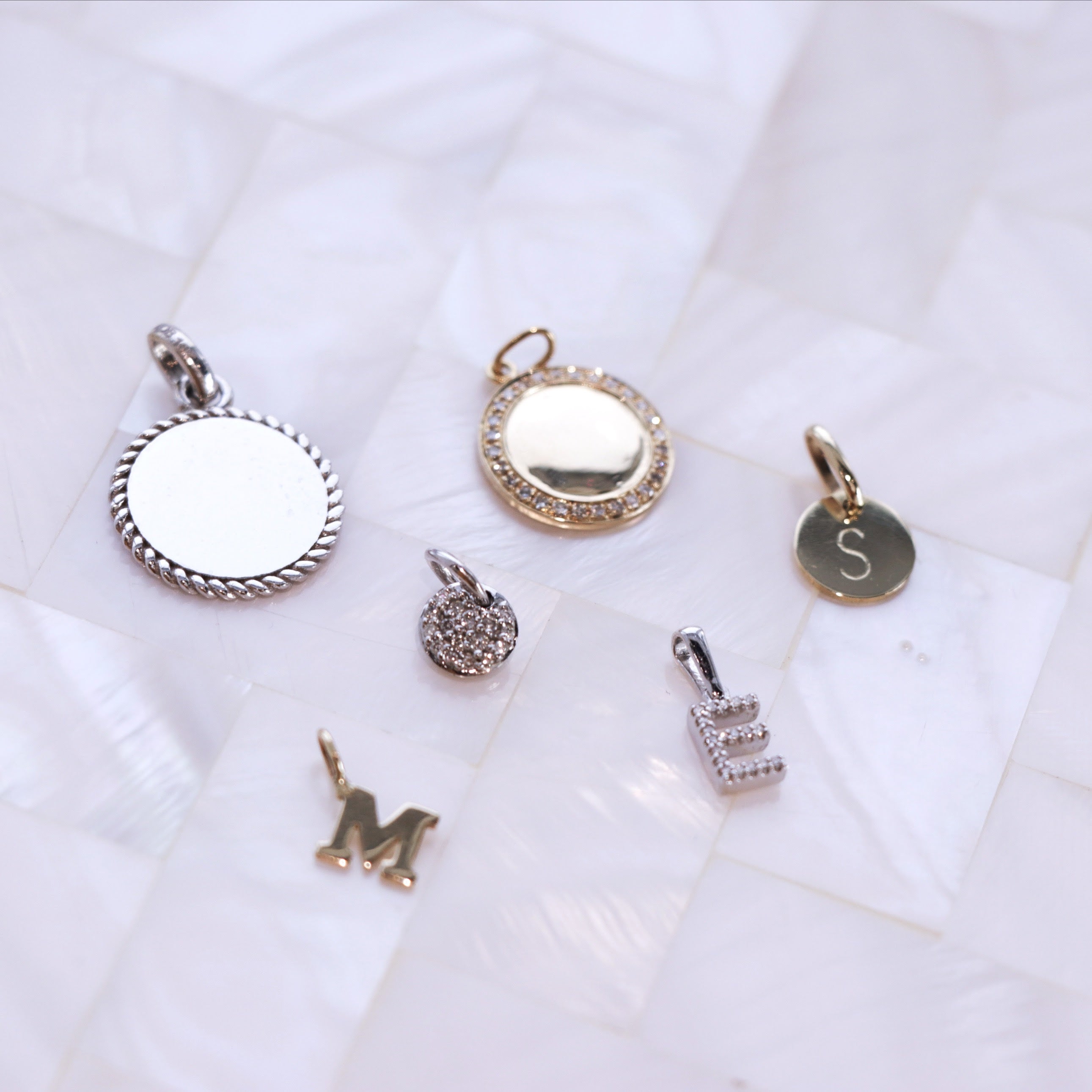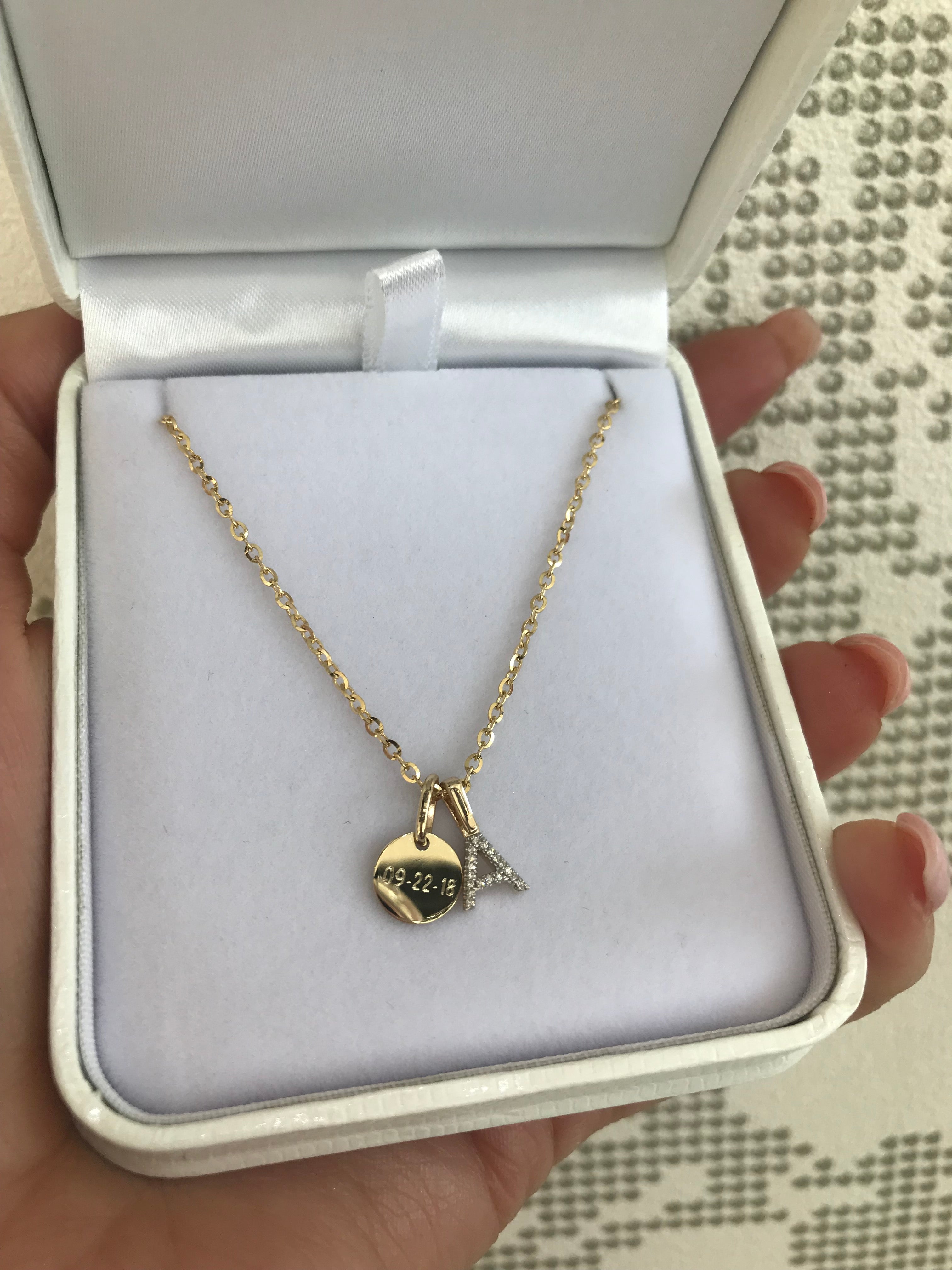 Our tiny diamond initial pendant is one of our best sellers. Delicate and pretty, it is a great addition to a layered look. Customize your necklace, bracelet or pin with an initial! Featuring 10k gold and I1 diamonds, available in white, yellow, and rose gold!