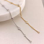 Simple and dainty, this trendy 14k/925 Vermeil cubic by the yard bracelet is a hot fashion accessory right now and yet forever a classic. Beautiful worn on its own or layered with other necklaces. Keep shopping for the matching necklace!!