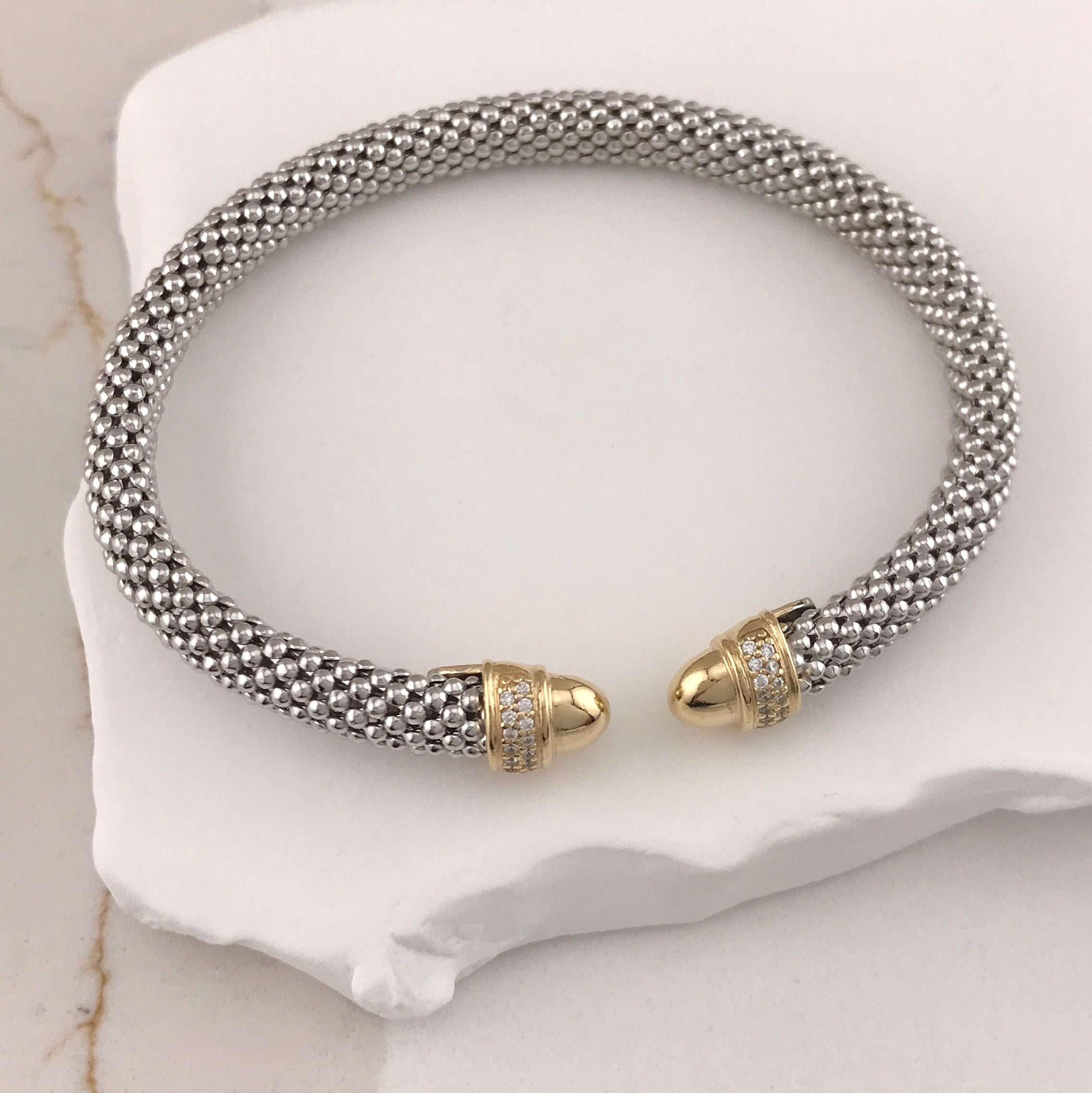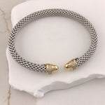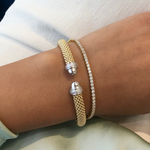 Miss Mimi- 925/14k Vermeil Slip-on Mesh Bangle With Cubic Zirconia