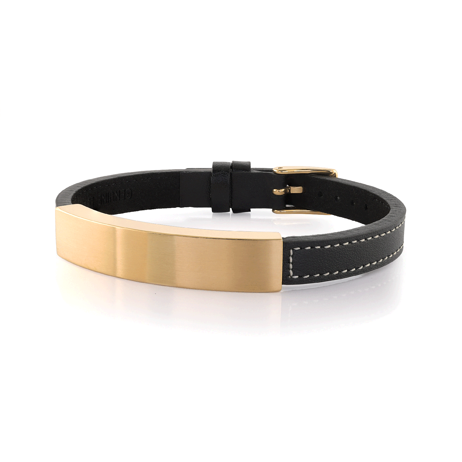 Engravable - Stainless Steel Flat Leather ID Bracelet Adjustable by Ital Gem