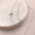 This beautiful sideways letter necklace is the perfect on trend accessory! Get your initial or the initial of a loved one, or get both and layer them together. Adjustable chain makes it easy to layer up.