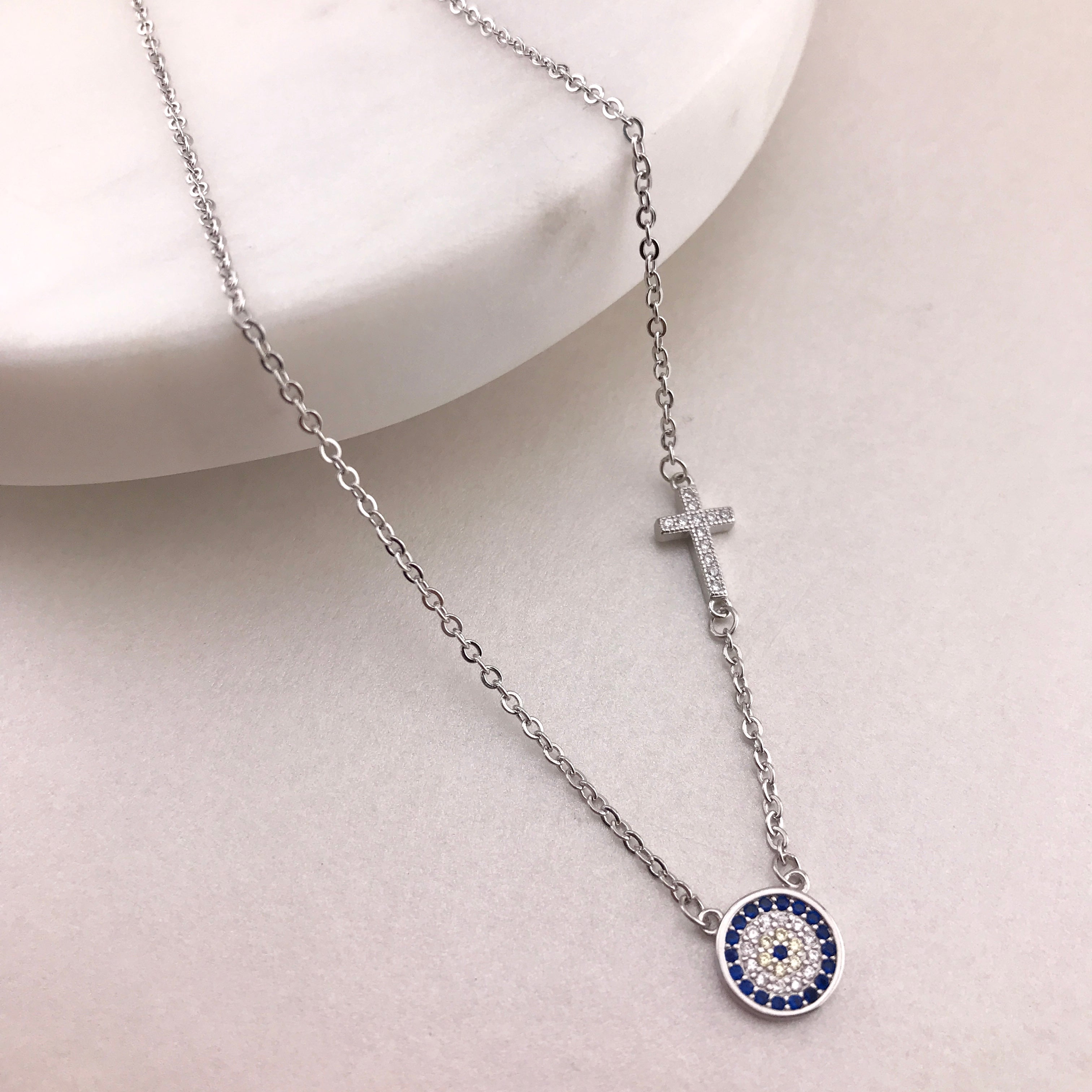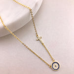 925/18K Vermeil CZ Evil Eye and Cross Necklace